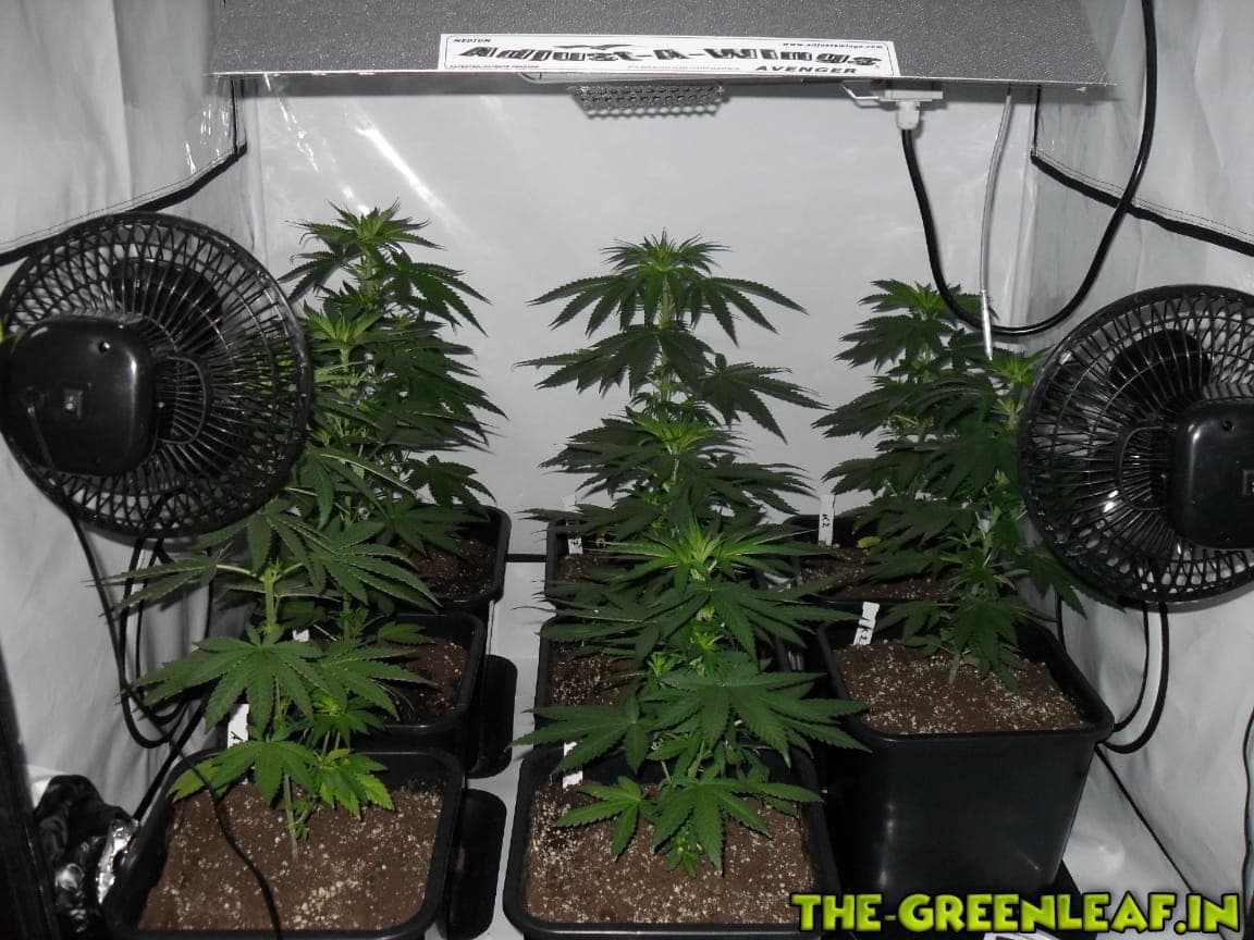 Heute sind die Damen endlich ins Zelt gezogen und werden nun mit 250w MH befeuert. Bei der Gelegenheit habe ich sie auch in 3,5l Schuhe gestellt, da ich das Gefühl hatte sie mangeln etwas. Die untersten Blätter der AK47 in der Mitte und der K2 vorne rechts sind etwas gelb geworden. Als Erde wurde nochmals BB Light-Mix verwendet. Das nächste Mal umtopfen möchte ich sie kurz vor der Einleitung der Blüte, dann allerdings in BB All-Mix.