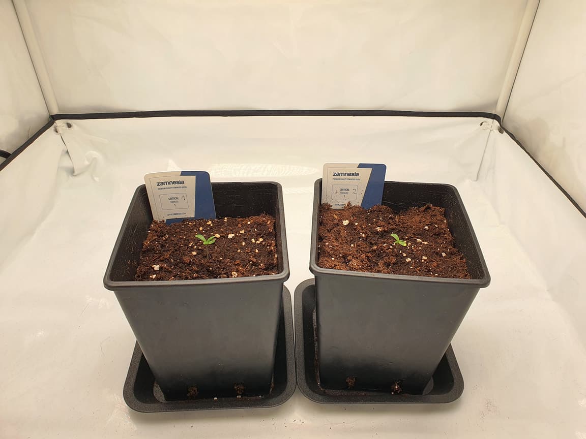 Jetzt stecken beide in dreieinhalb Liter Erde, die ein 50/50 Mix aus der frux und dem BioBizz Allmix ist. Damit das klar ist: für mich ist das der erste Veggietag.