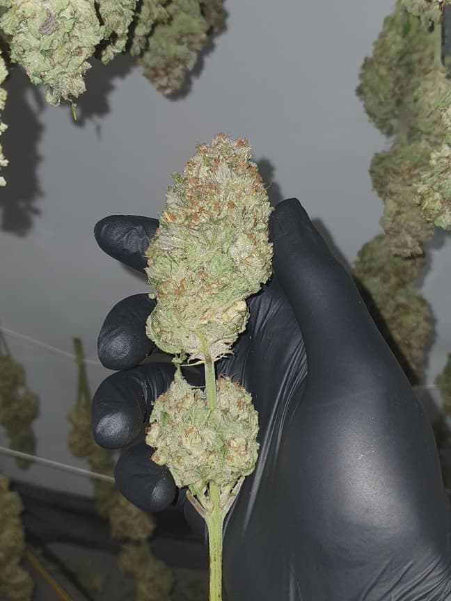 Beim Trocknen habe ich dann die Luftfeuchtigkeit etwas niedriger gehalten, was allerdings in Kombination mit den hohen Temperaturen zu einem etwas zu schnellen Trocknen geführt hat. Die kleinen Buds sind jetzt schon fertig, ich hab sie heute zum curen getan. die dickeren brauchen vielleicht noch ein paar Tage. Habe sie jetzt aber schon abgenommen und nochmal manikürt: