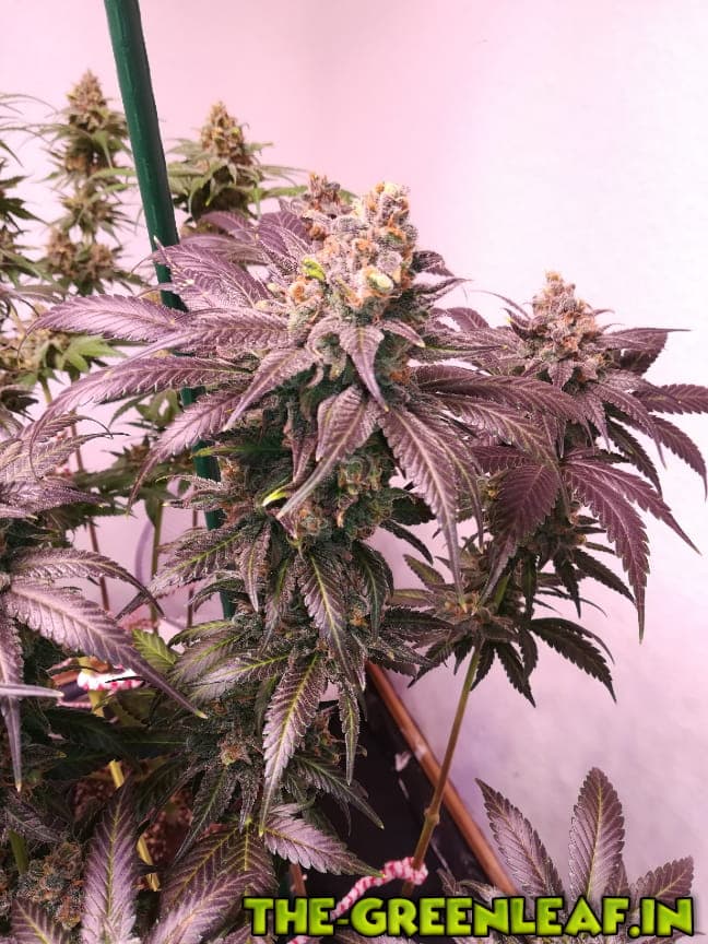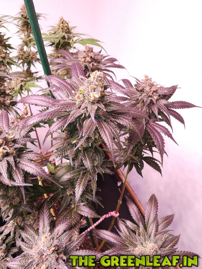 Eine Dame ist richtig blau geworden. Von dieser habe ich heute eine kleinen Bud aus der Mitte genommen und mal Fotos von den Trichomen gemacht.