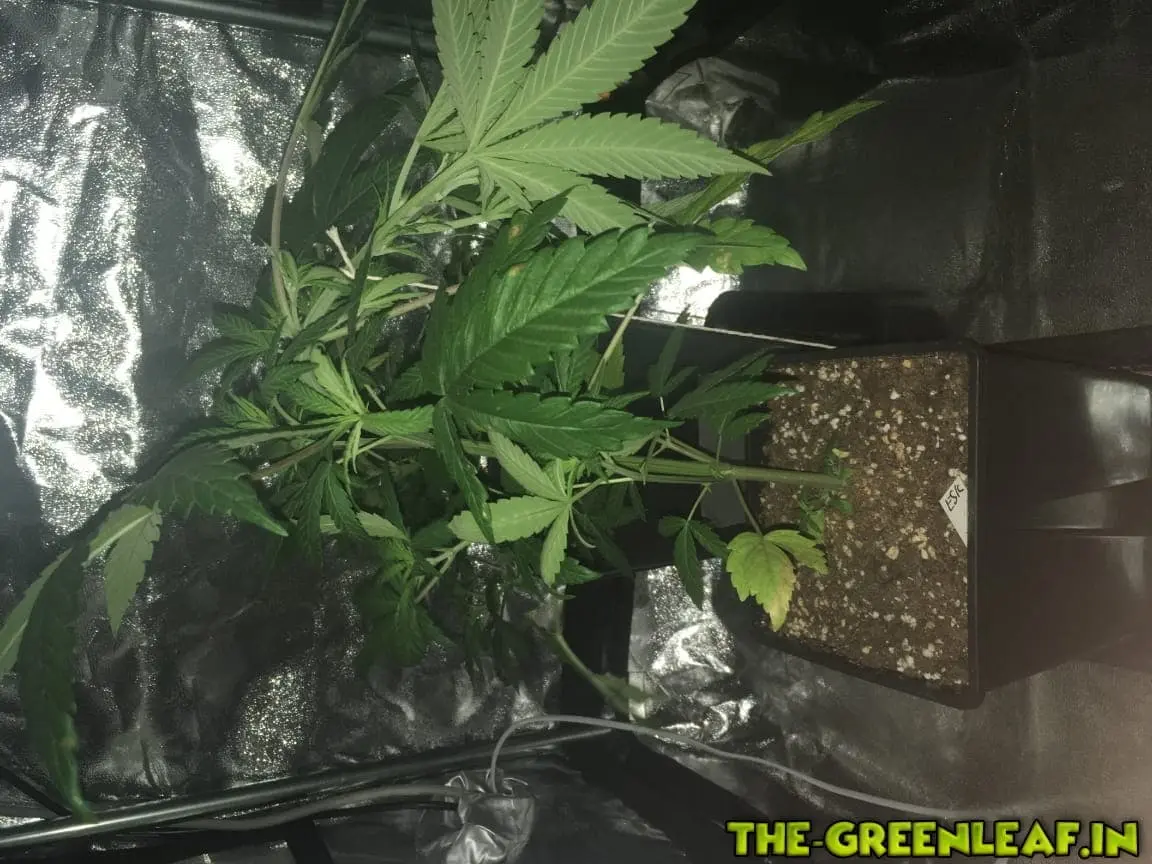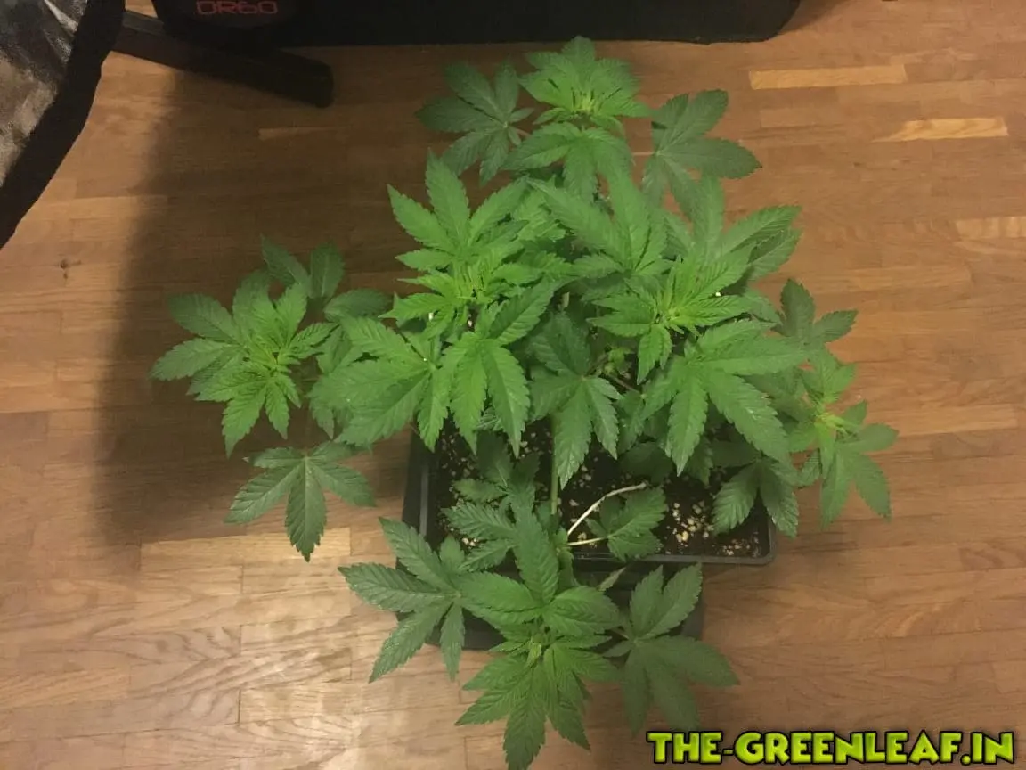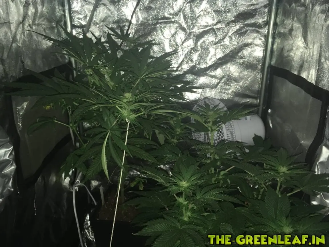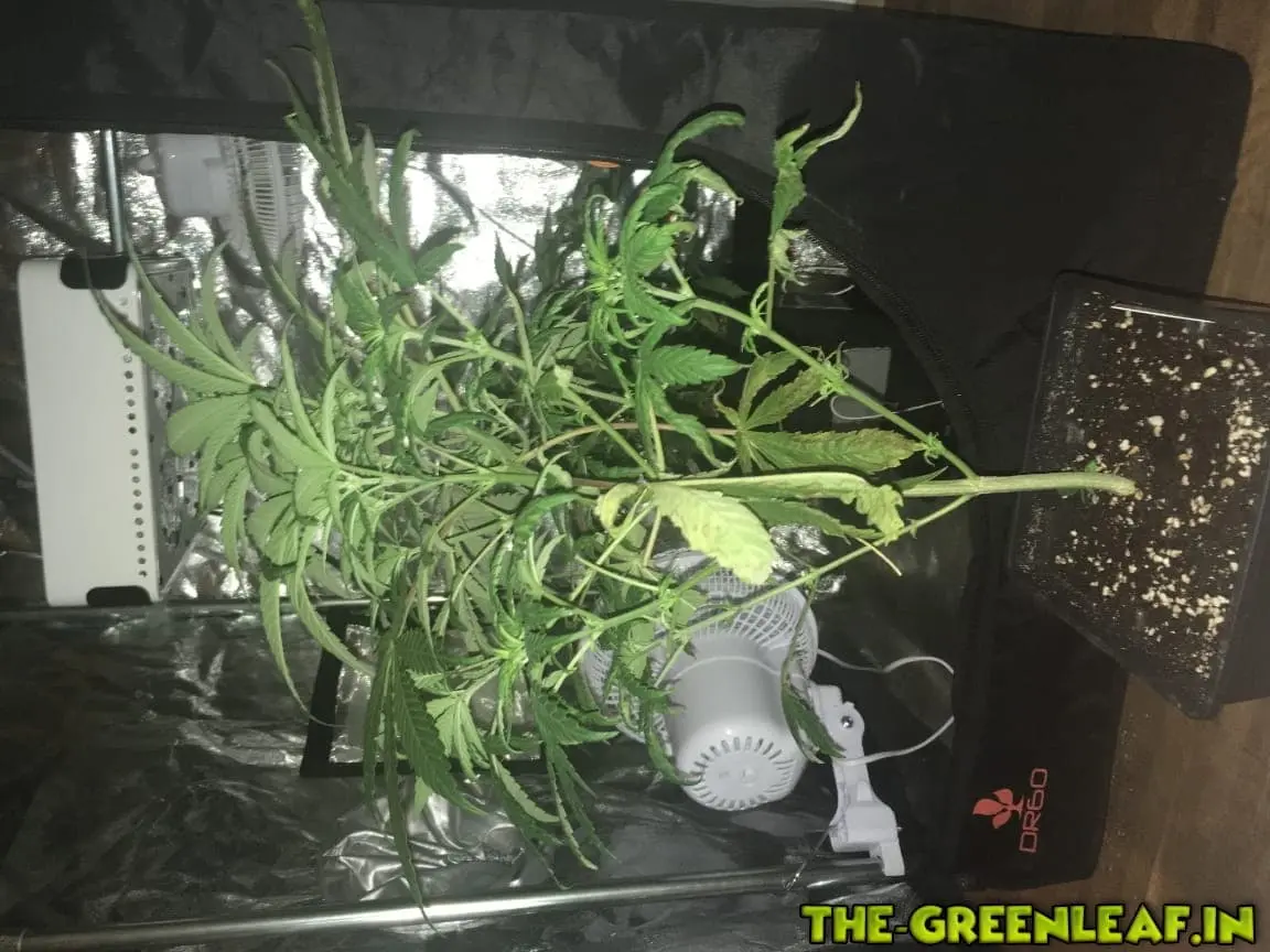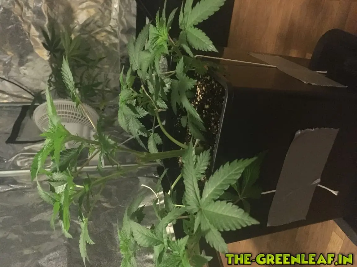 Die Early Skunk wächst wie verrückt, sieht mir auch sehr nach Sativalastig aus (siehe Blätterwerk). Hab sie nun ein zweites mal runter gebunden, um die Lampe wieder näher an die GSC hängen zu können.