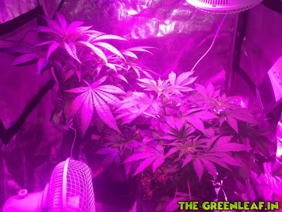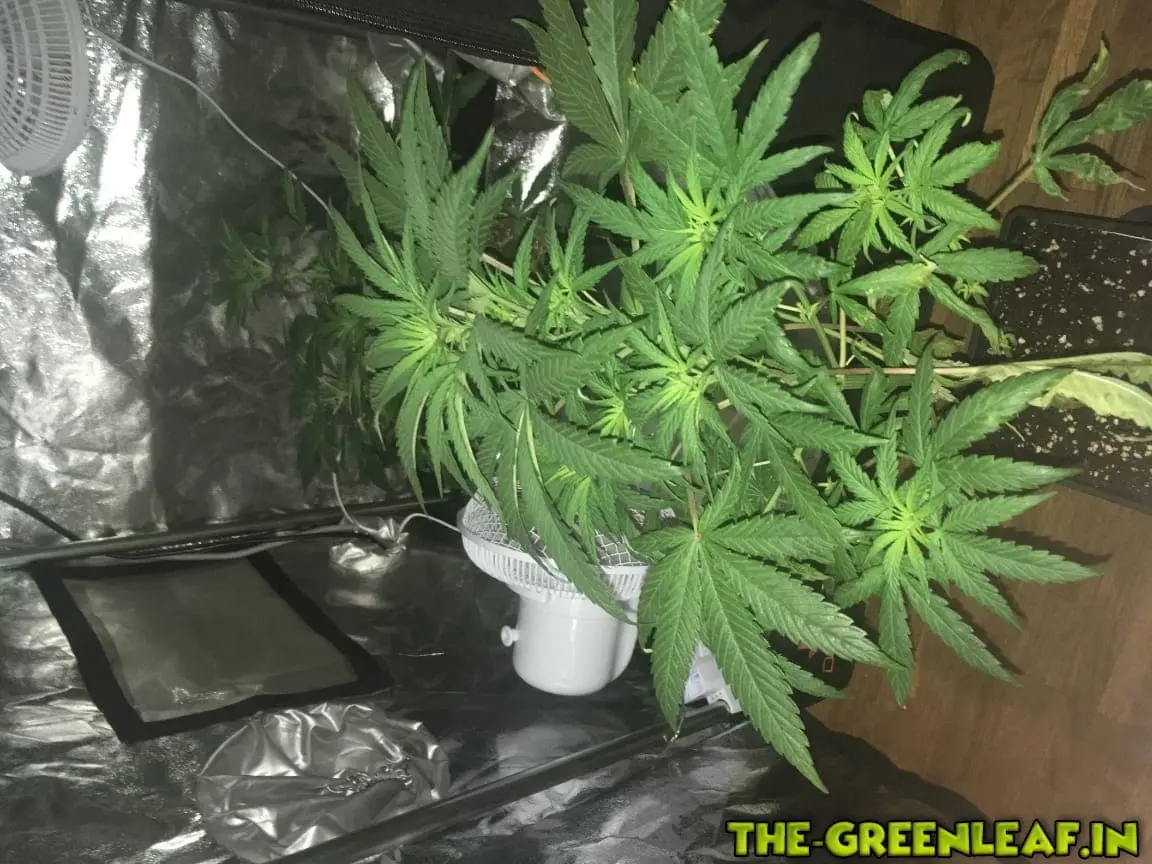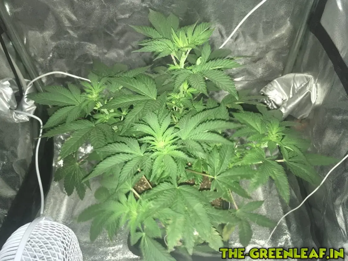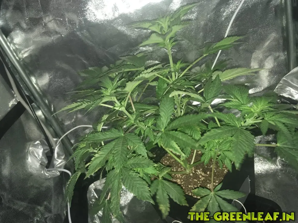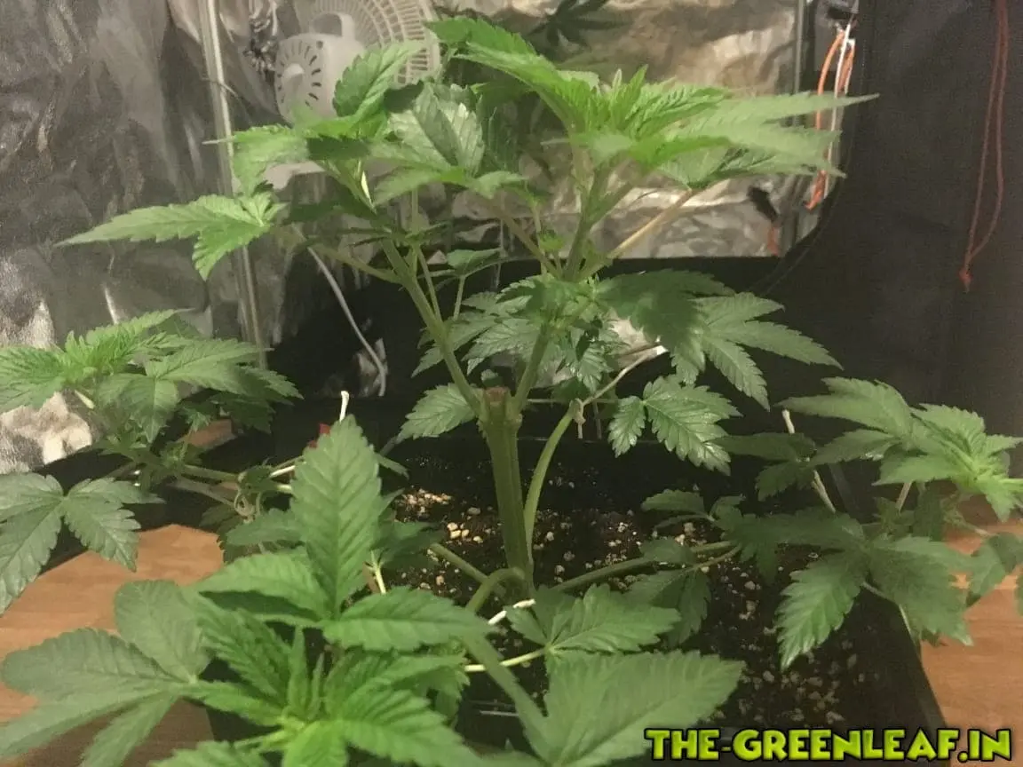 Die Early Skunk wächst wie verrückt, sieht mir auch sehr nach Sativalastig aus (siehe Blätterwerk). Hab sie nun ein zweites mal runter gebunden, um die Lampe wieder näher an die GSC hängen zu können.