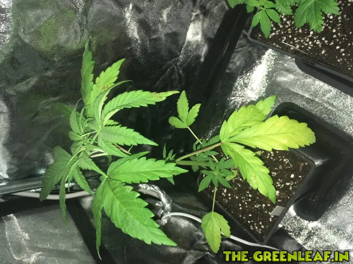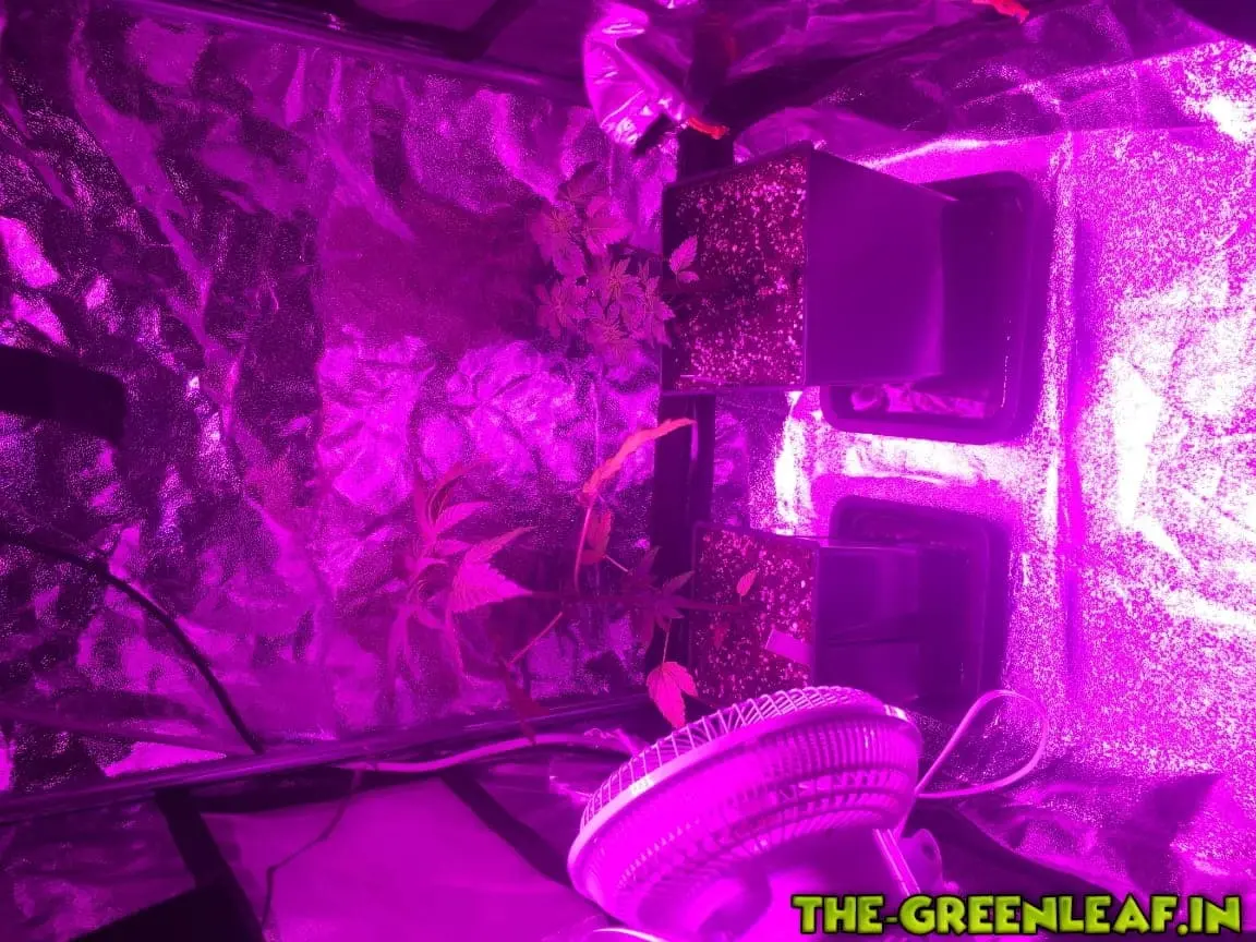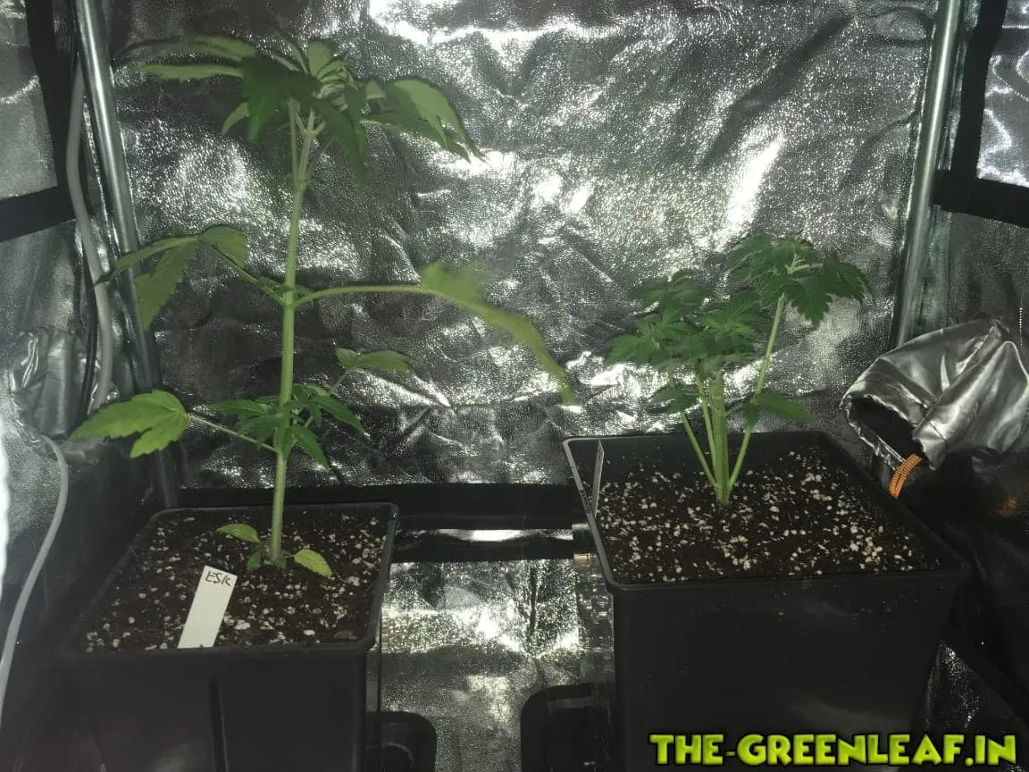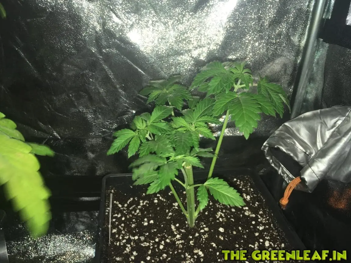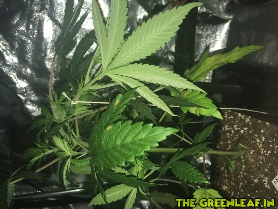 Die Early Skunk wächst wie verrückt, sieht mir auch sehr nach Sativalastig aus (siehe Blätterwerk). Hab sie nun ein zweites mal runter gebunden, um die Lampe wieder näher an die GSC hängen zu können.