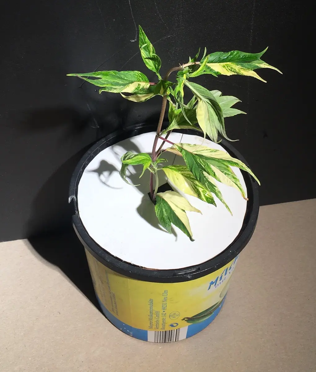 Ich bin die Panaschierung wieder los, weil die weißen Felder tragen nichts zur Photosynthese bei und die Genetik ist so schon nicht besonders ertragsfreudig.