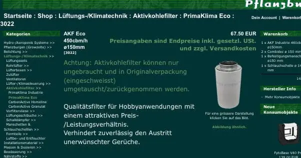 Lässt sich auf 68 Euro reduzieren, wenn er das Klima konstant unter 60% Rlf hält und nix sprüht und nicht raucht oder fettig kocht oder wenigsten dabei die Tür zum Growzimmer zu lässt. Für den Anfang ist man aber mit nem zusätzlichen Zentimeter Kohle besser beraten oder sogar mit der Feinkohle von nem Rhino.