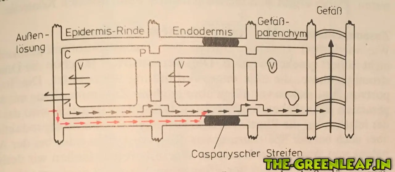 Besagte Streifen haben noch mal ne Sonderfunktion, als Ionenselektor, weil alles an diesen Sperren vorbei durchs Zellplasma muss. Dadurch können nicht beliebige Mengen an Ionen in den eigentlichen Pflanzensaft gelangen, Bzw. wird der Pflanzensaft nicht so leicht verwässert. -