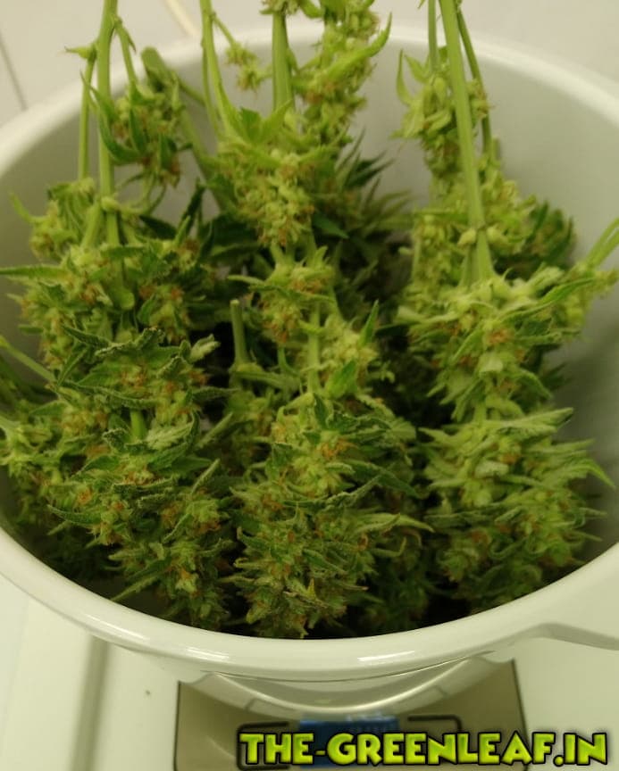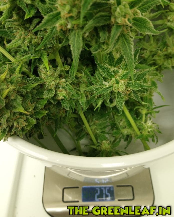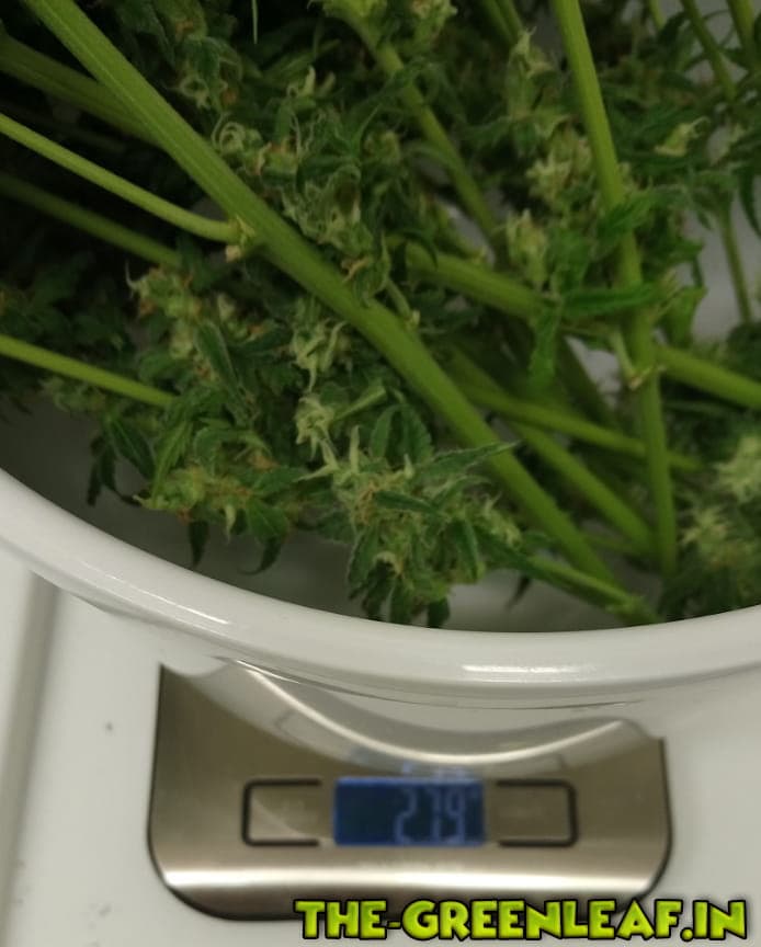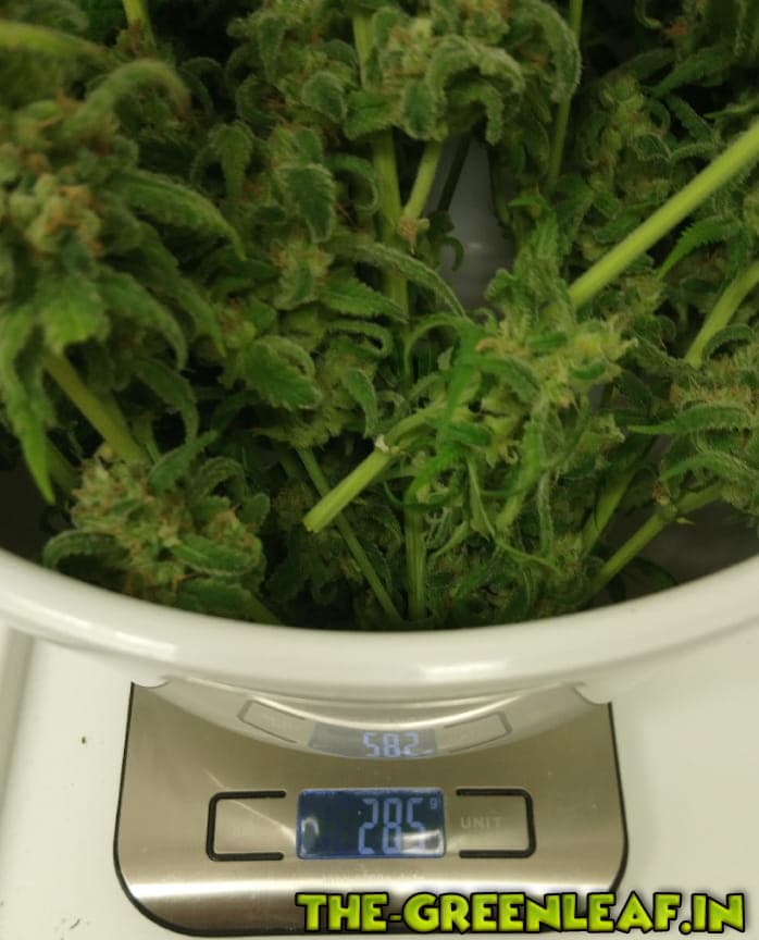 Das Nassgewicht inkl. der dicken Äste betrug knapp 1,2kg. Die kleine Plant in der Mitte, hat mit Abstand am wenigsten abgeworfen.