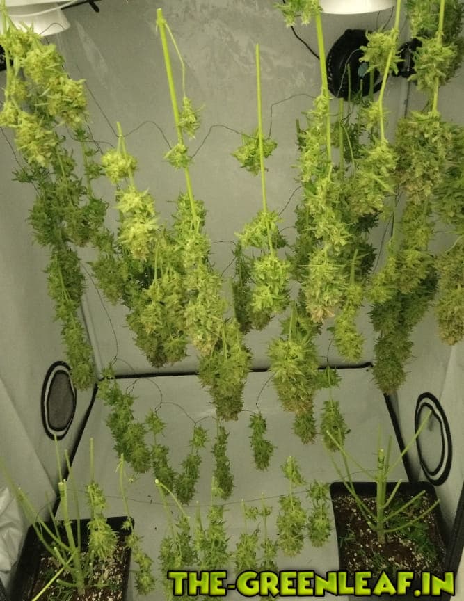 Letztes Wochenende haben die Damen ihr gesamtes Blattwerk hergeben müssen und die Triebe wurden kopfüber ins Zelt gehangen.