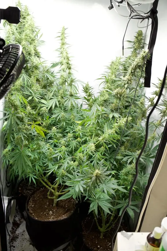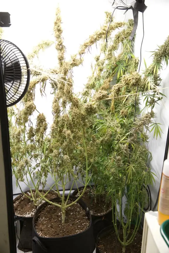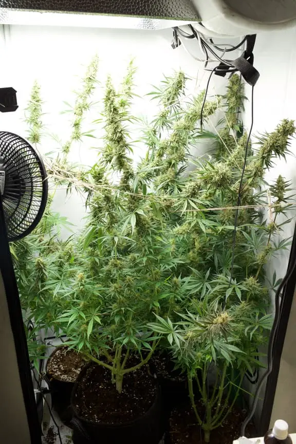 Im grow war sie nicht ganz homogen, eine war so viel kleiner dass ich sie mit einem Eimer aufstocken musste. Gestretched sind die meisten aber so um die 300% würde ich schätzen, so große Pflanzen hatte ich noch nie stehen.