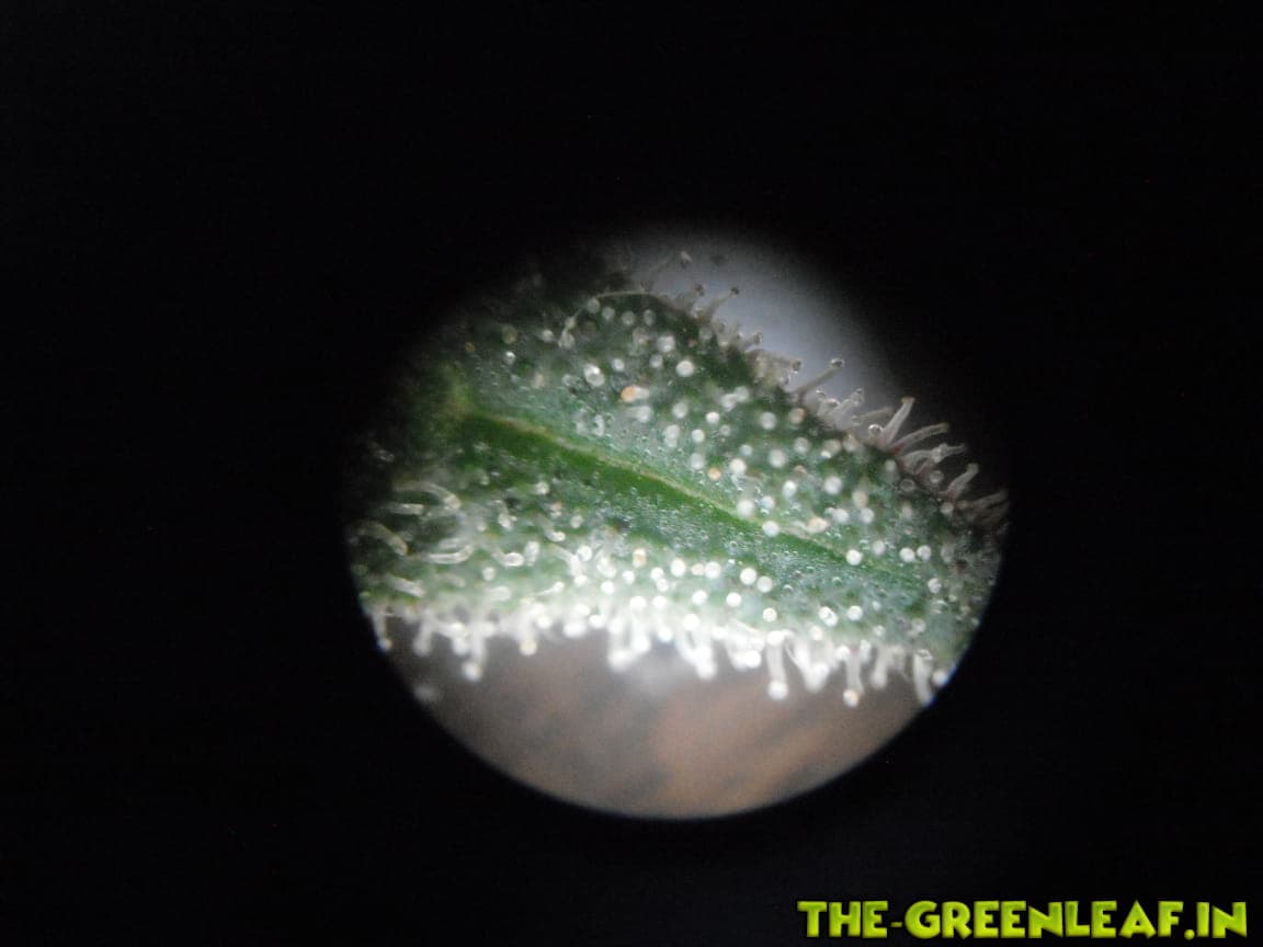 Trichome sind immer unterschiedlich, zwischen leicht klar bis milchig bis leicht bernstein, deswegen lass ich sie noch ein bisschen in Ruhe