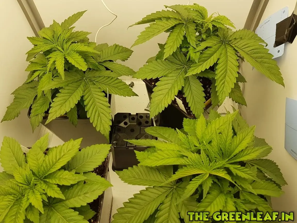 Die Pflanzen befinden sich im Vegietag 21. Stehen momentan in 4l Töpfen. Das sind aber nicht die Endtöpfe. Wollte sie zum Start der Blütephase oder kurz vorher in 9l Pötte umsetzen. 11l Töpfe habe ich auch, aber dann wird es wohl zu eng in der Box.