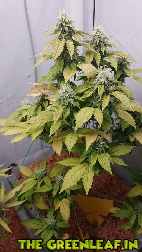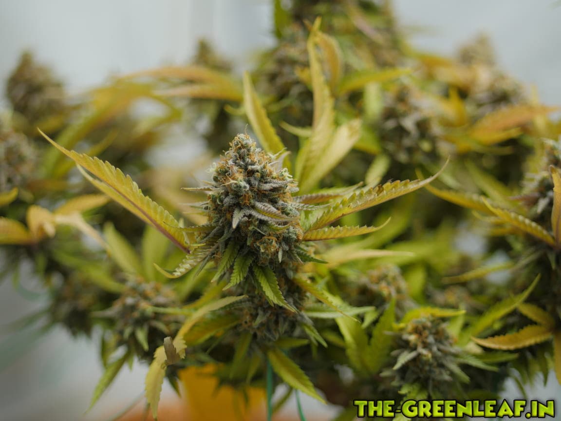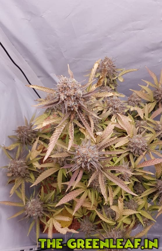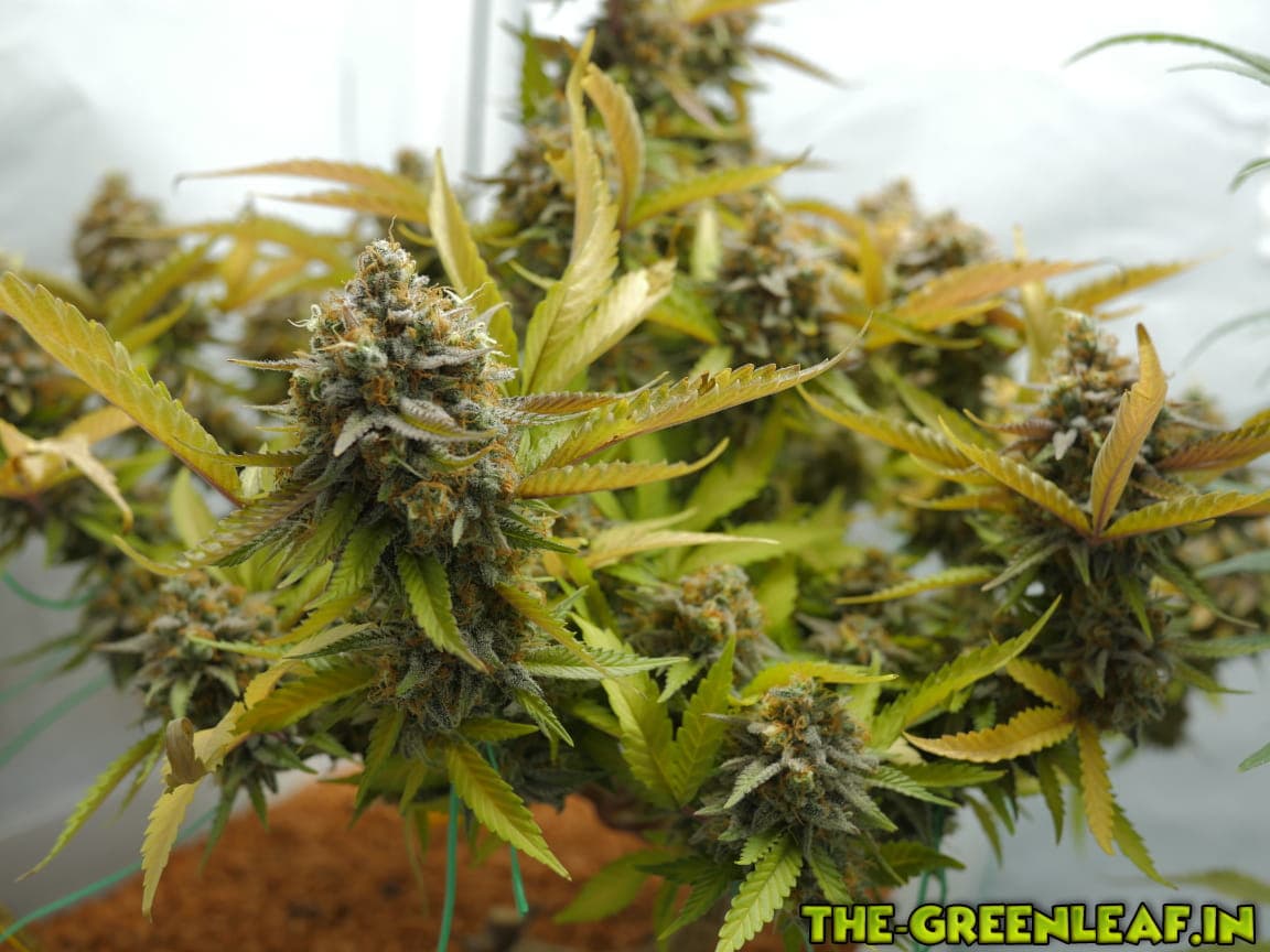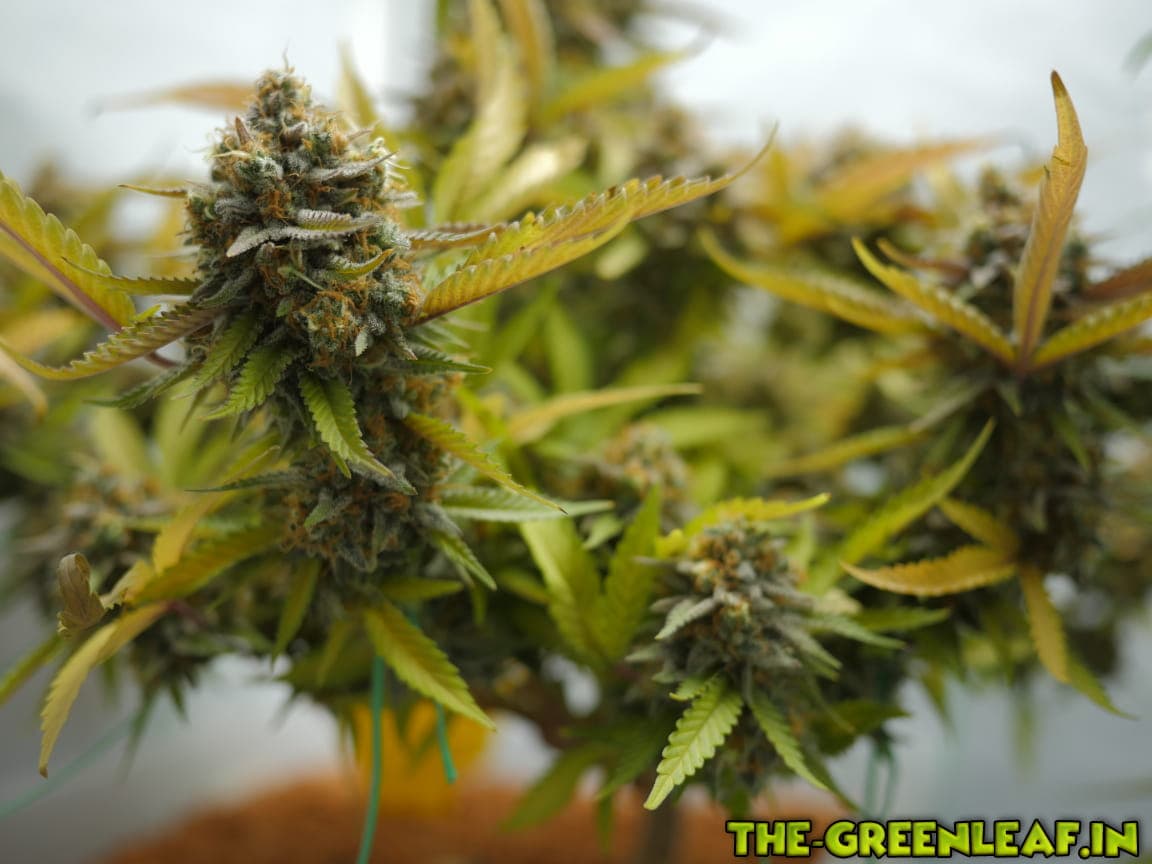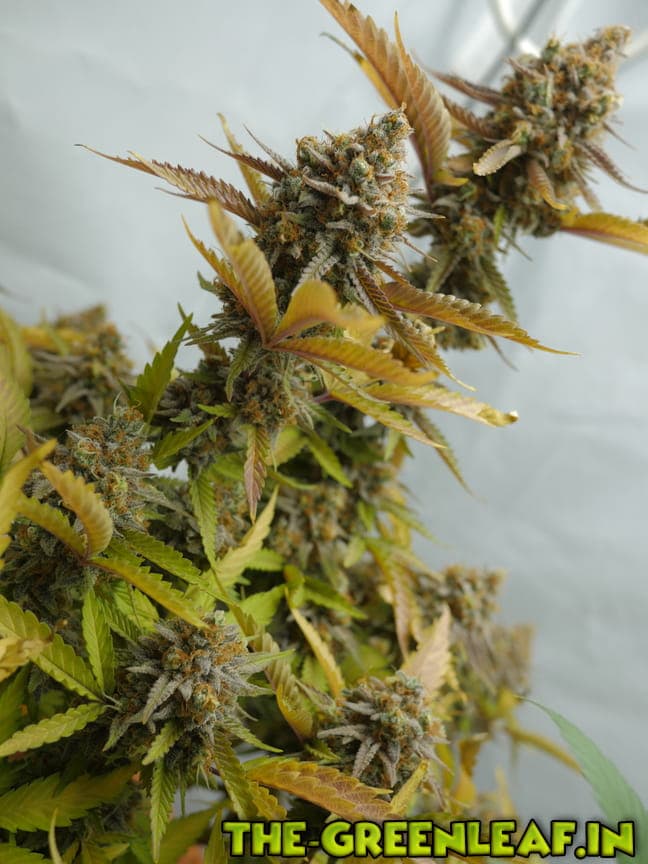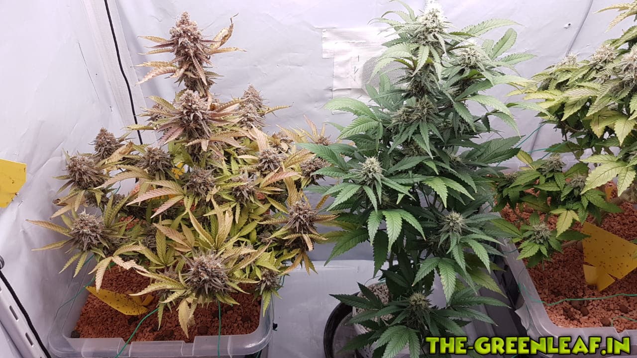 Die Sour Diesel geht in ihre letzte Woche. Spätestens am Freitag soll gernetet werden. Die unteren, größeren Blätter sind fast komplett mit Braunen/Milchigen Trichomen besetzt, je weiter es hoch geht, desto weniger braune werden es.