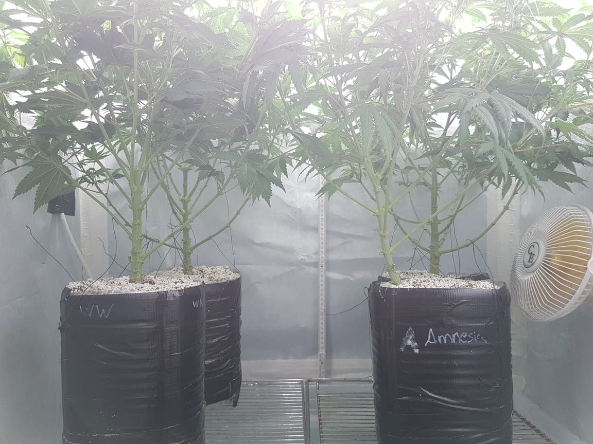 Du musst halt aufpassen dass der Drain zwischen 6.00 und 6.30 liegt. Zu hoch oder zu niedrig führt zu Problemen. Wenn die Pflanzen von unten her gelb werden, ist das normalerweise Hunger. Aber nicht bei 1.5 EC.