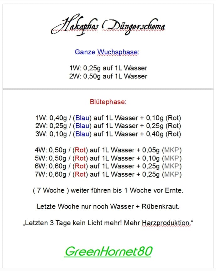 Okay also reicht es wenn ich mit Hakaphos rot auf 1g 1L Wassergehe. Und 0.3 g MKP.