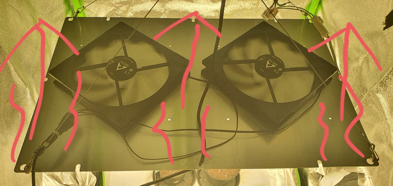 Ach ich pack 4 lüfter auf 2 panels ist egal höre die fast garnicht auf 12v mega.