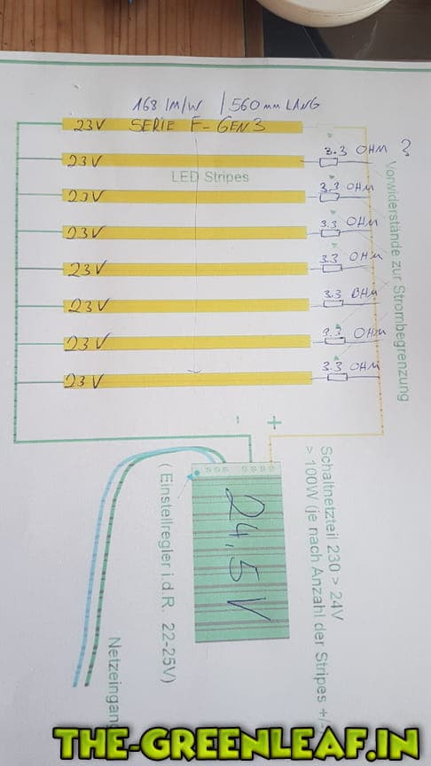 Habe jeweils zwischen jeden Strip 3.3 ohm 5w