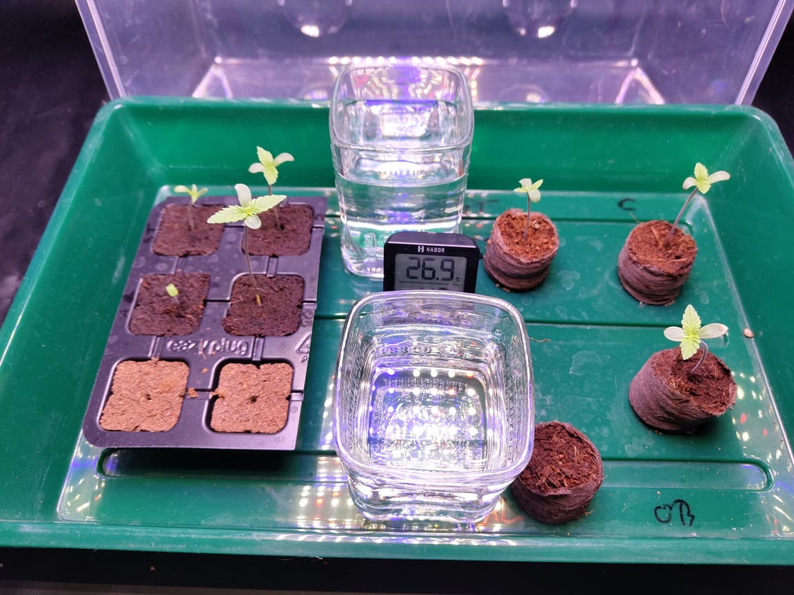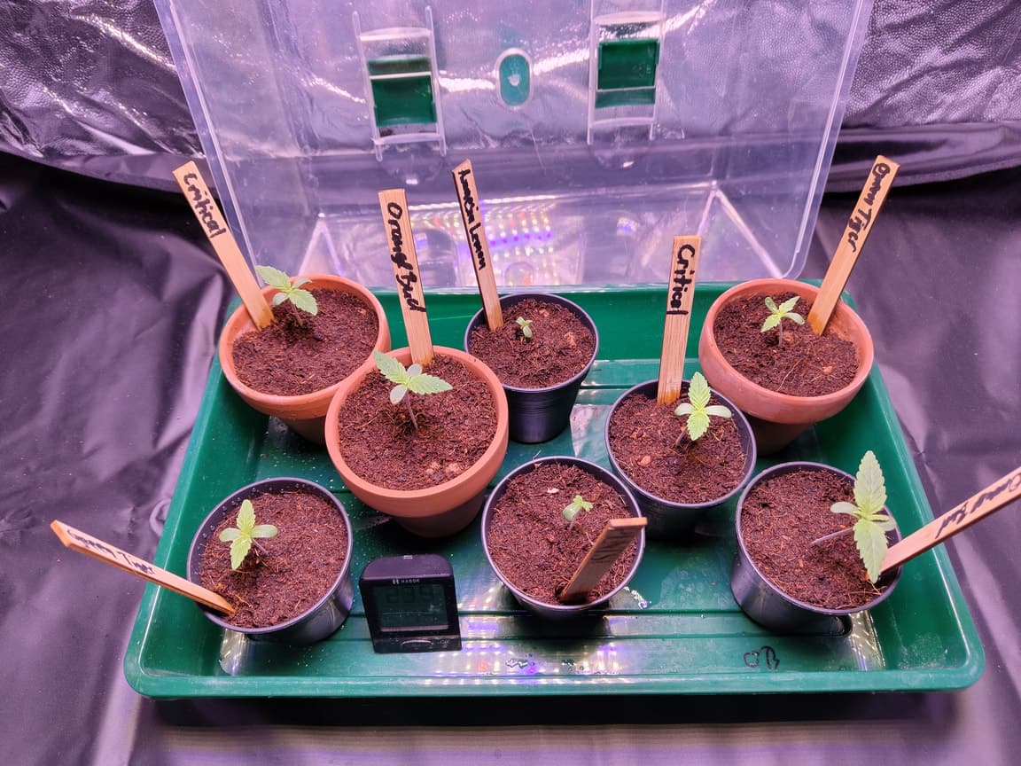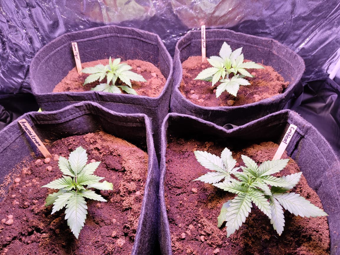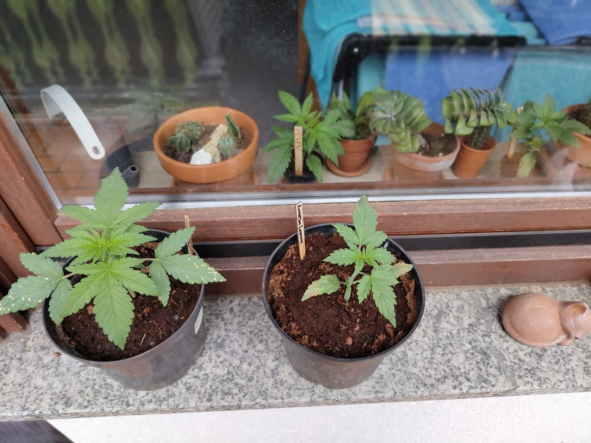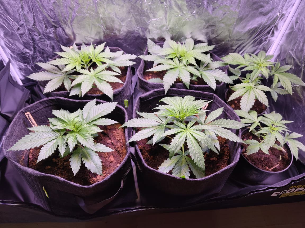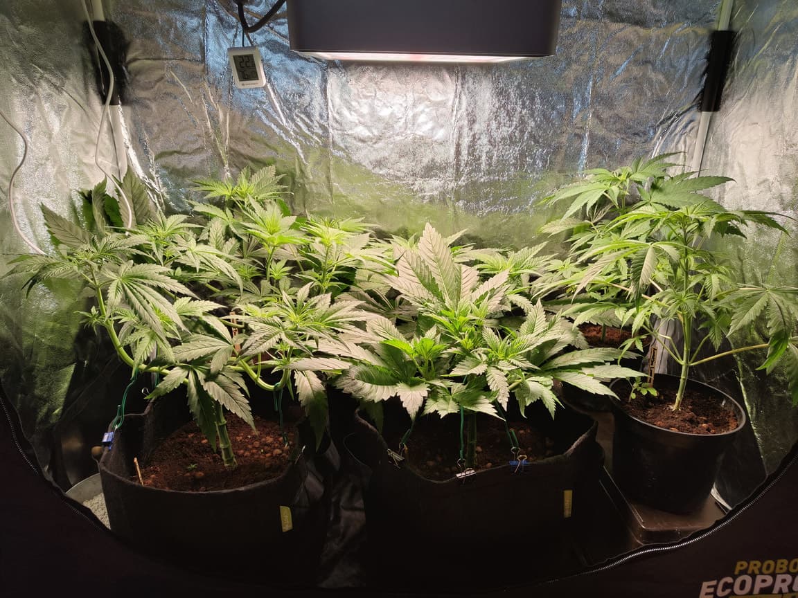 Die beiden halbaussätzigen in den kleinen Töpfen (Orange Bud und Amnesia Lemon) haben schon ganz mit der Blüte vorgelegt. Die in den Große Töpfen legen aber auch langsam los