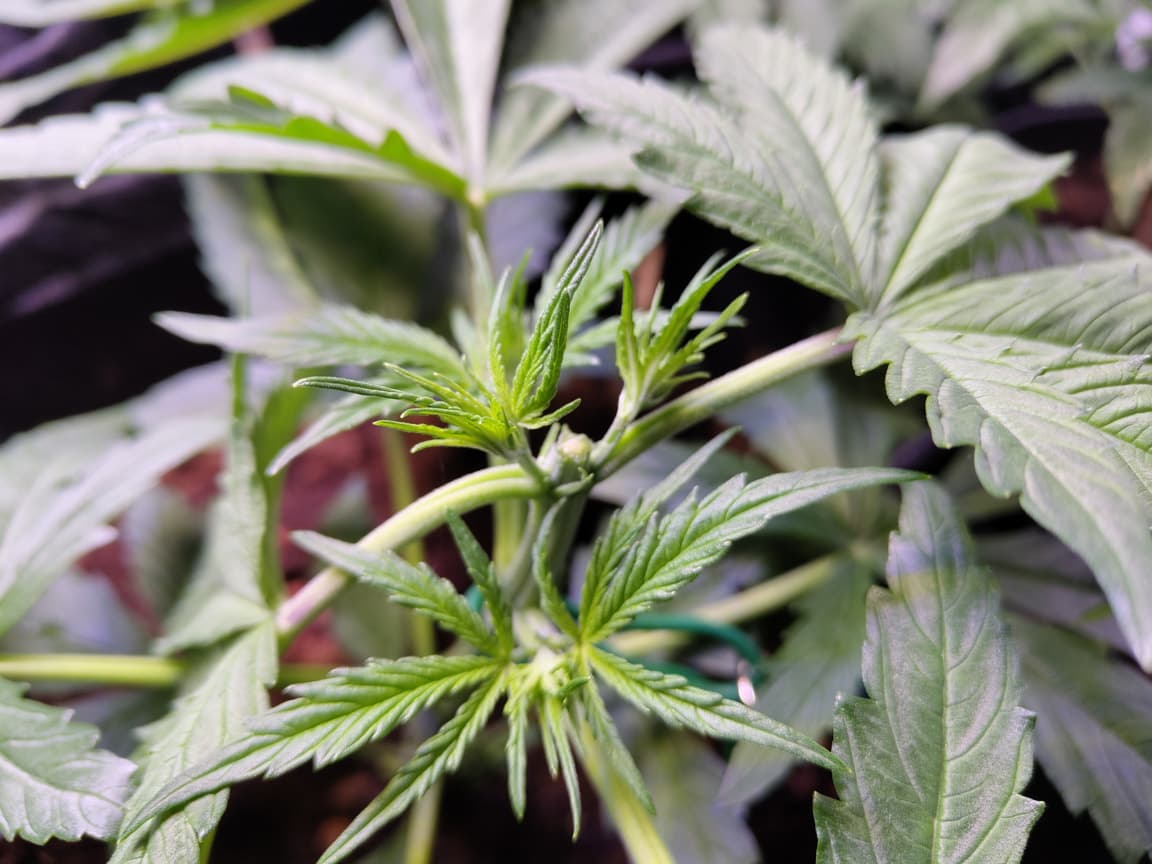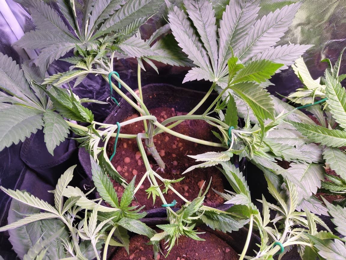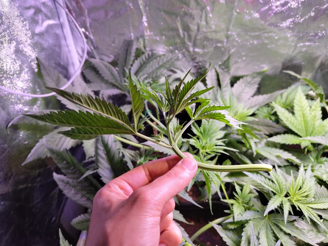 Der Stamm der Green Tiger hat sich gespalten und hat von mit ne Schiene bekommen. Hat jemand ne Idee warum ich dieses mal so Probleme mit Brüchigen Stilen habe? Meine Hypothese ist, dass die Stämme aufgrund der großen Töpfe zu dick für das LST geworden sind.
