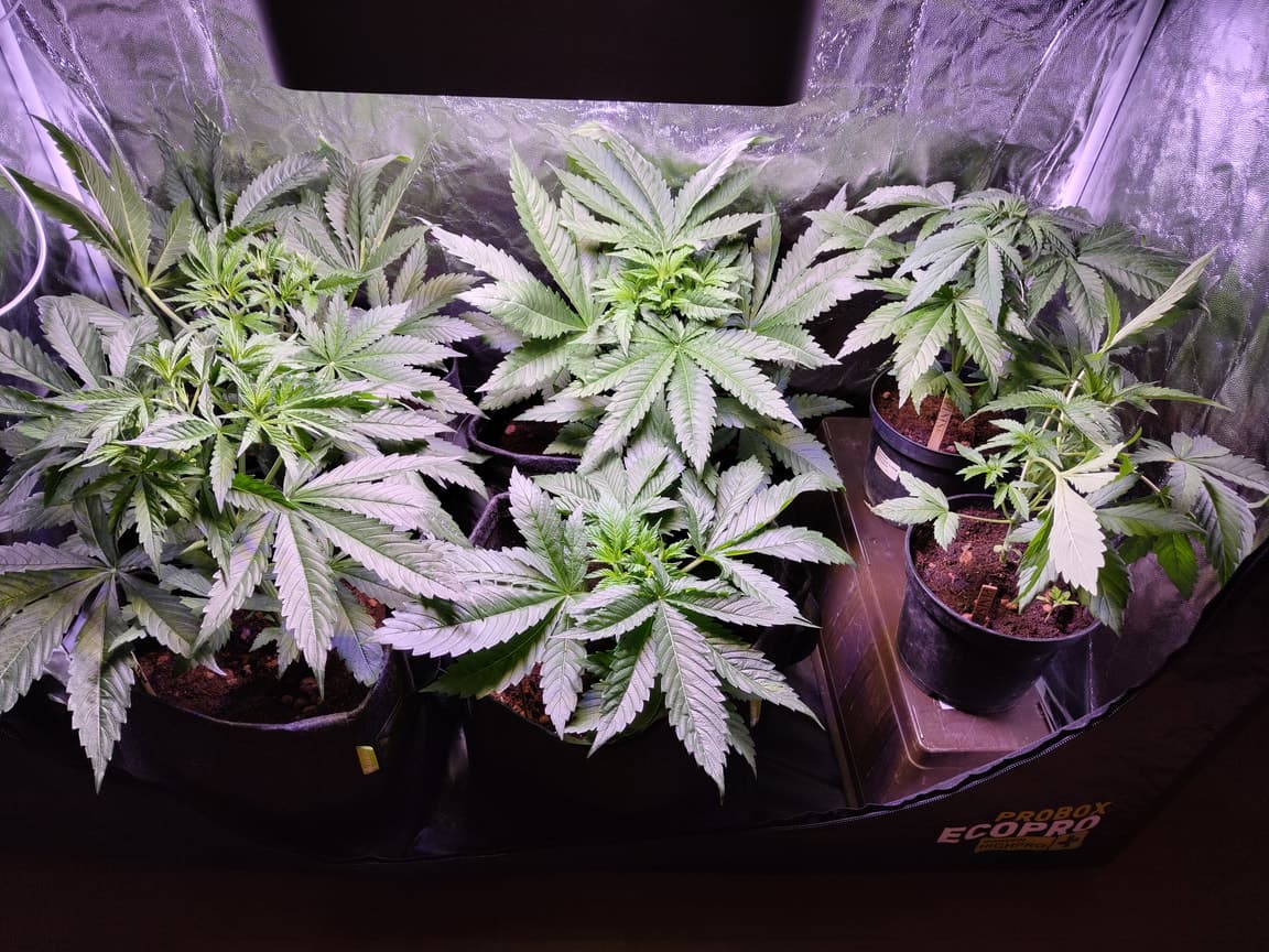 Das schönste Wuchsbild hat die gefimte Amnesia. Sollte ich den nächsten Grow auch mit 6 Pflanzen machen werde ich alle früh FIMen und evtl. etwas früher in die Blüte schicken. Kleinere Töpfe wären denke ich auch besser gewesen...