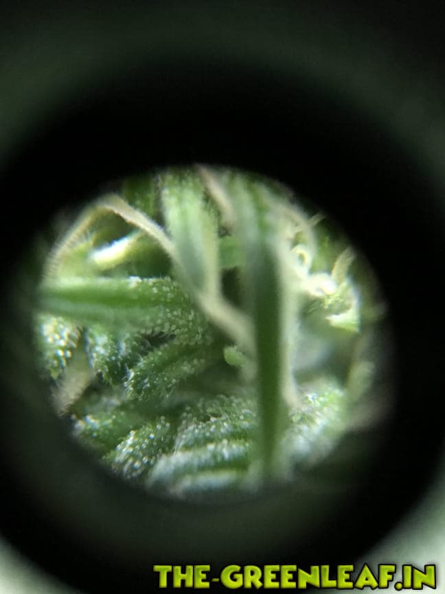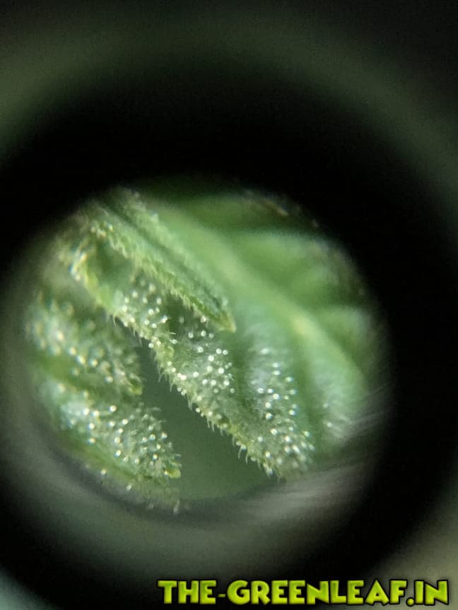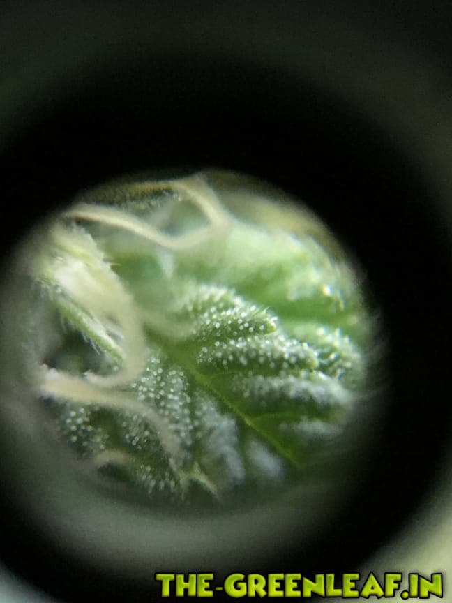 Ich hab mal ein paar Nahaufnahmen von den Trichomen gemacht hoffe man kann da was erkennen. :rolleyes: