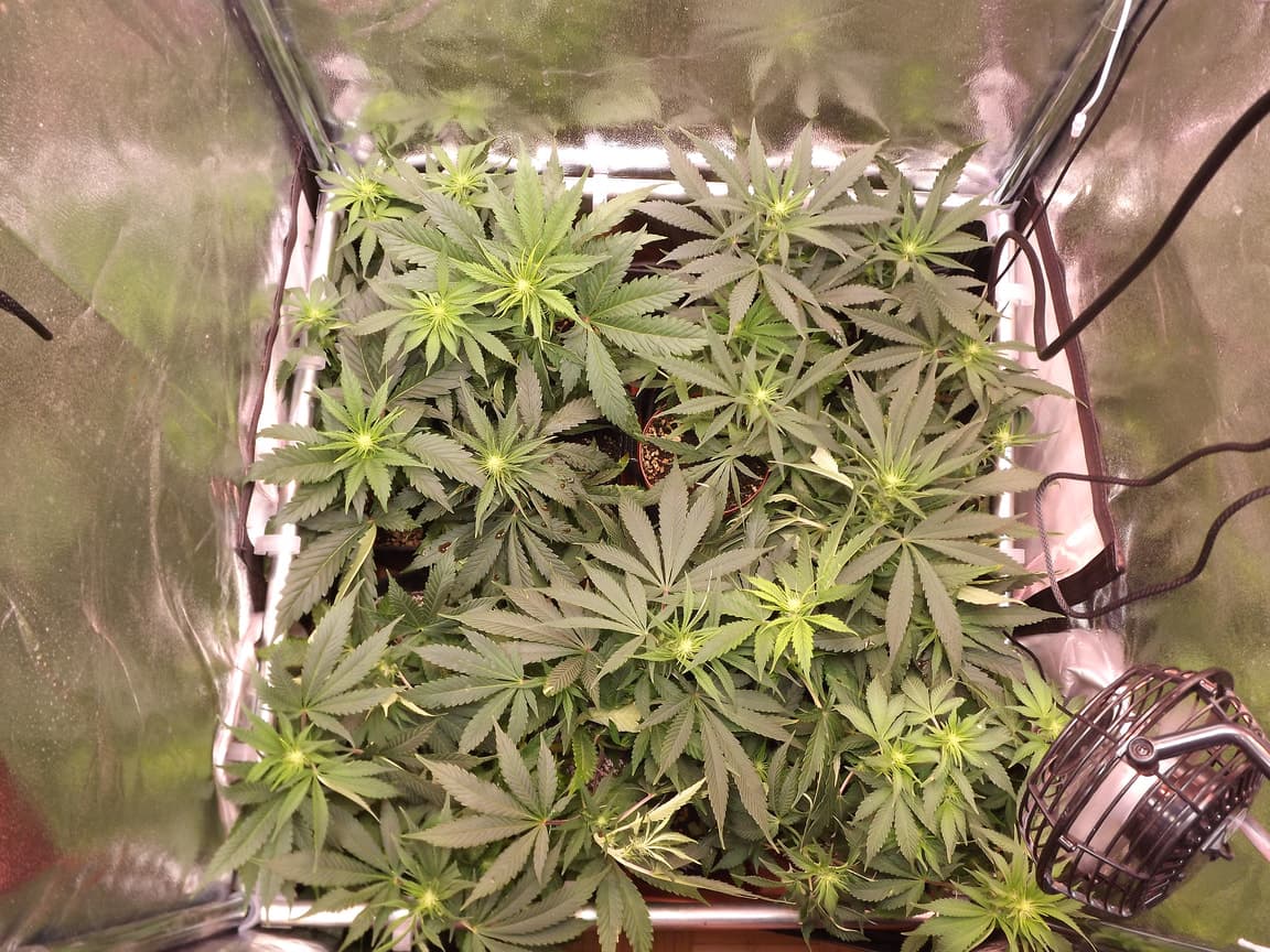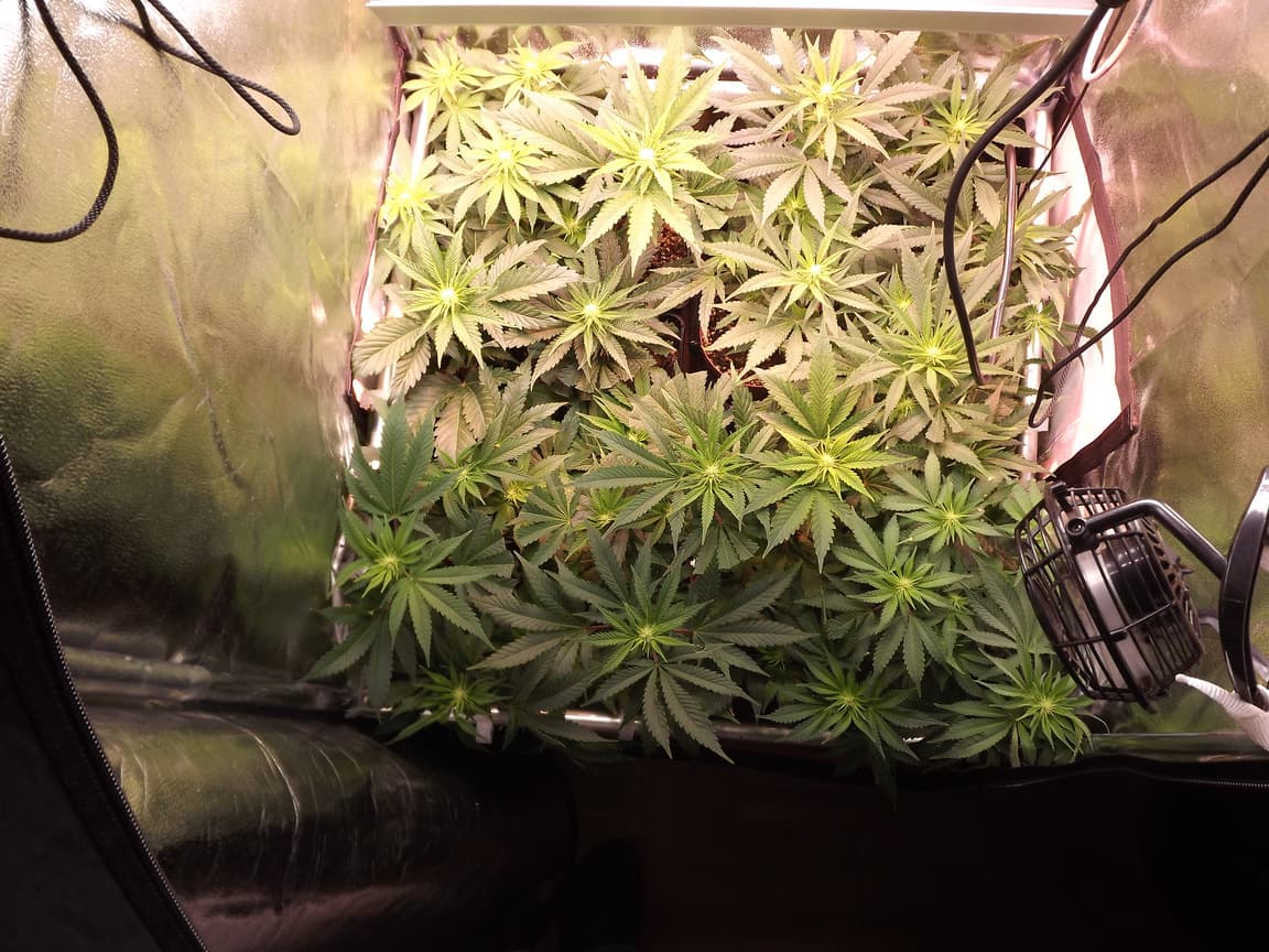 soooo, nach ein paar tage mal wieder nen update. Die verkrüppelte scheint den anderen pflanzen knapp ne woche vorraus zu sein, aber da das zuchtzelt auch das trockenzelt ist wird die pflabze wohl ein bisschen drüber kommen.