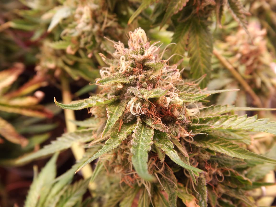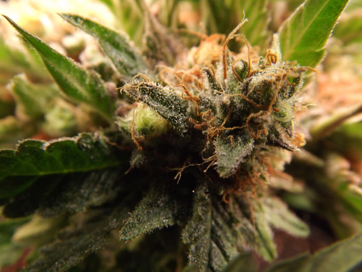 hab ich gleich futzerl abgeknippst und mit lupe geschaut, trichome sind glasig, bei skunk fängts an mit leicht brauch - haben aber noch weisse härchen zwischendrinnne.