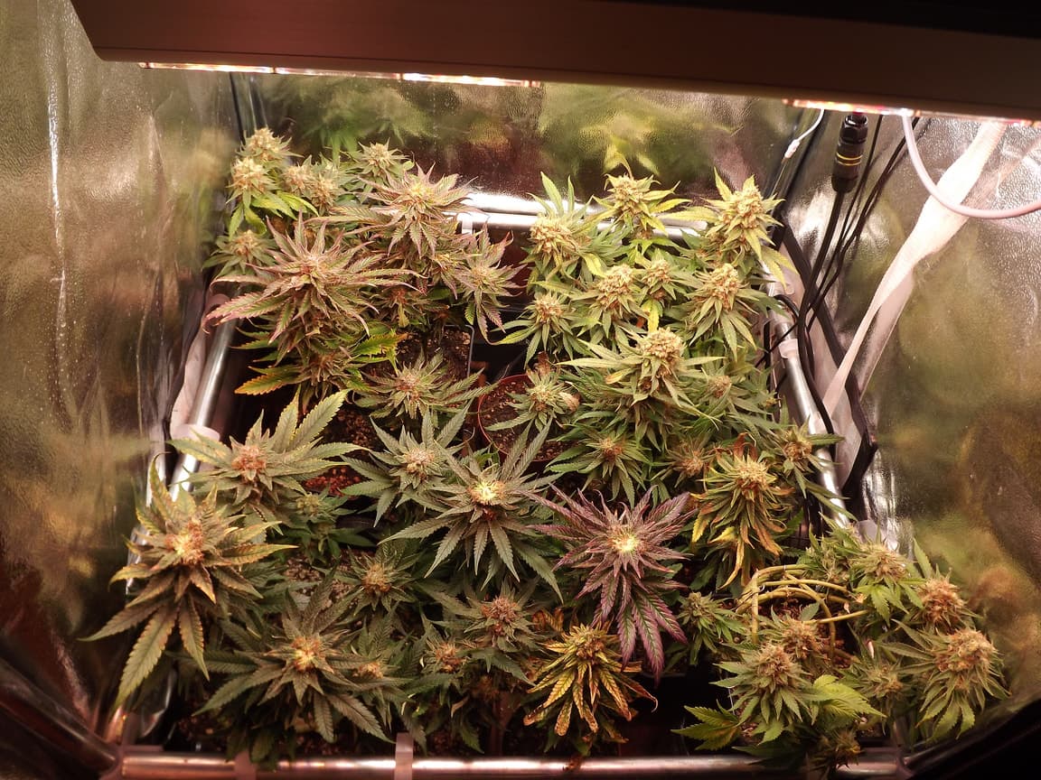 also ich hatte glaub ich erst eine die eher sativa war und höher wuchs, aber auch noch ned bis licht am anschlag oben war ....