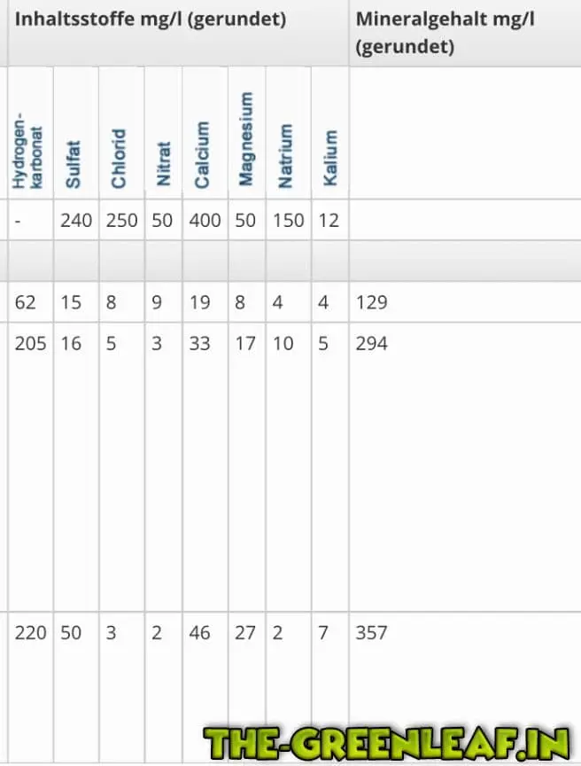 Also die Gesamthärte beträgt 8,6 und die restlichen Werte sind in der Tabelle gut dargestellt. -