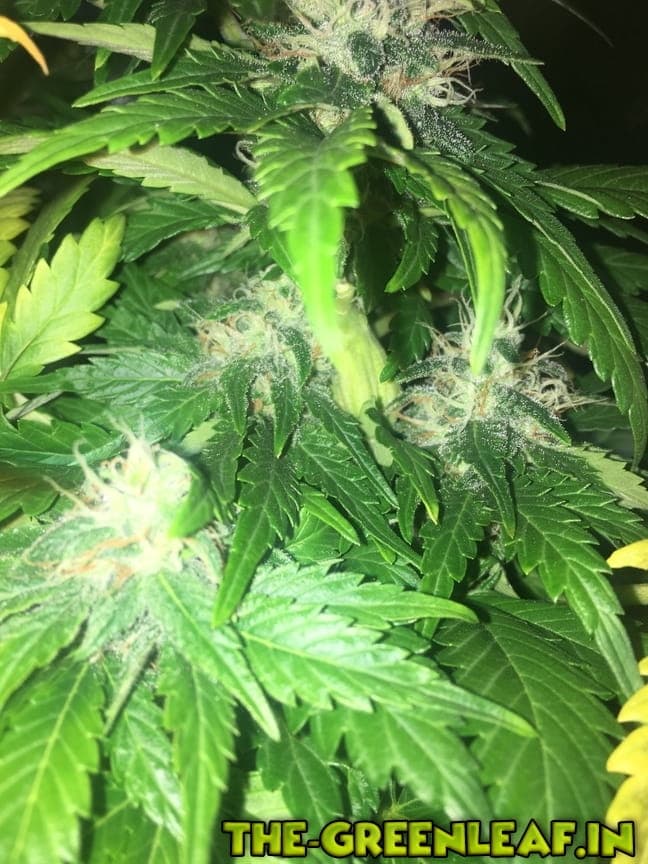 Die Trichome sind warscheinlich auch noch alle klar.Bei jedem Bud würde ich jtz mal so sagen sind 10% bräunlich.