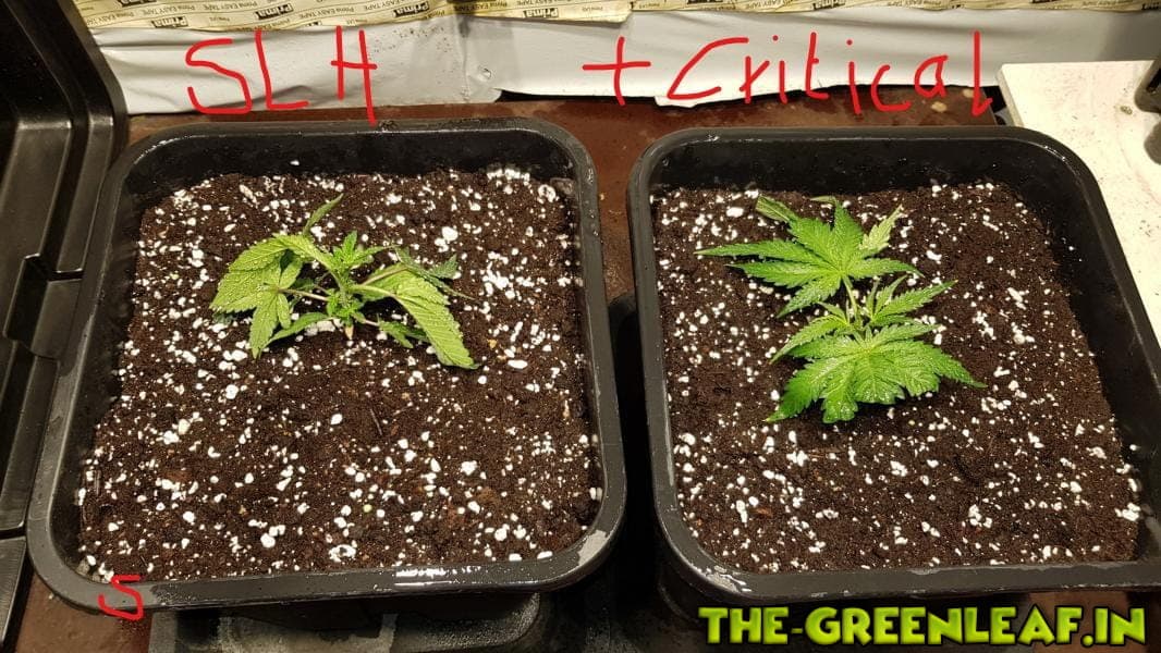 ganz gut. Rechts war die SuperLemonHaze, die jetzt in 10 Liter Erde steckt. Die Critical hat die SLH in einer Woche total "überschattet", wonach ich mich zum Eintopfen in Erde entschloß. Bin leider ab heute Abend wieder weg, mal sehen wie die klar kommen. Panel läuft auf ca. 75% ( ca. 35Watt) und hängt 40cm überm Top.