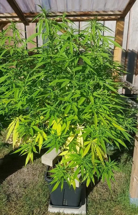 Und zu viel N in der Blüte ist eh nicht so gut. Der untere Teil kann sich doch gelb färben, der obere zum Ende hin.