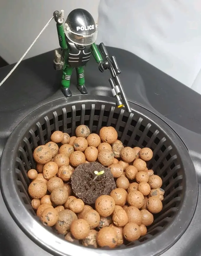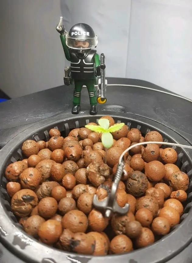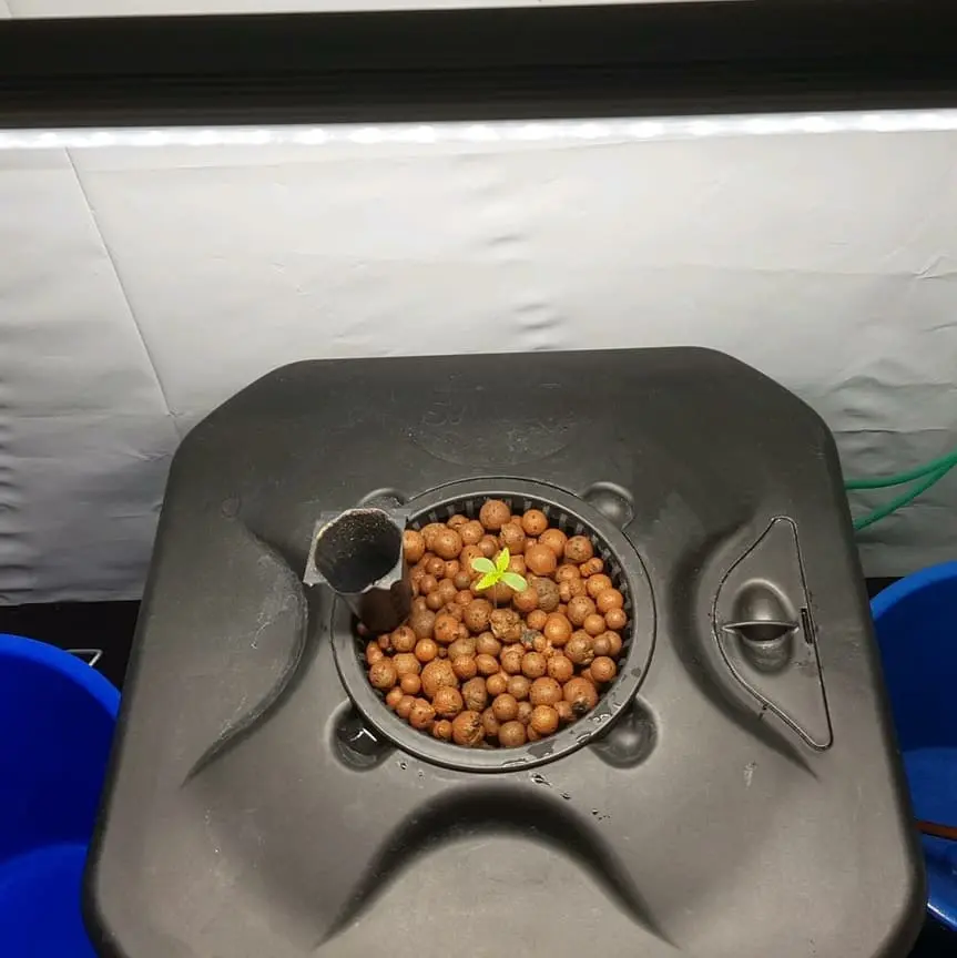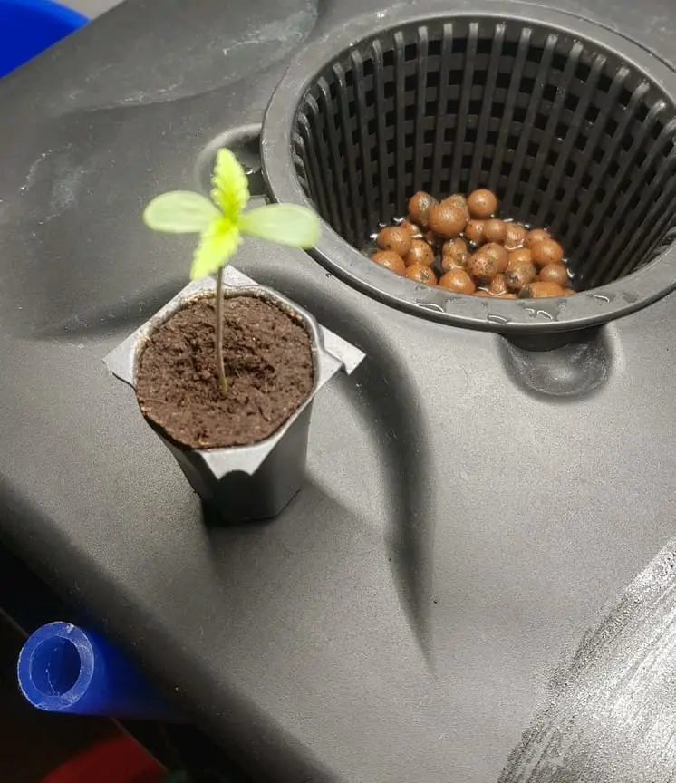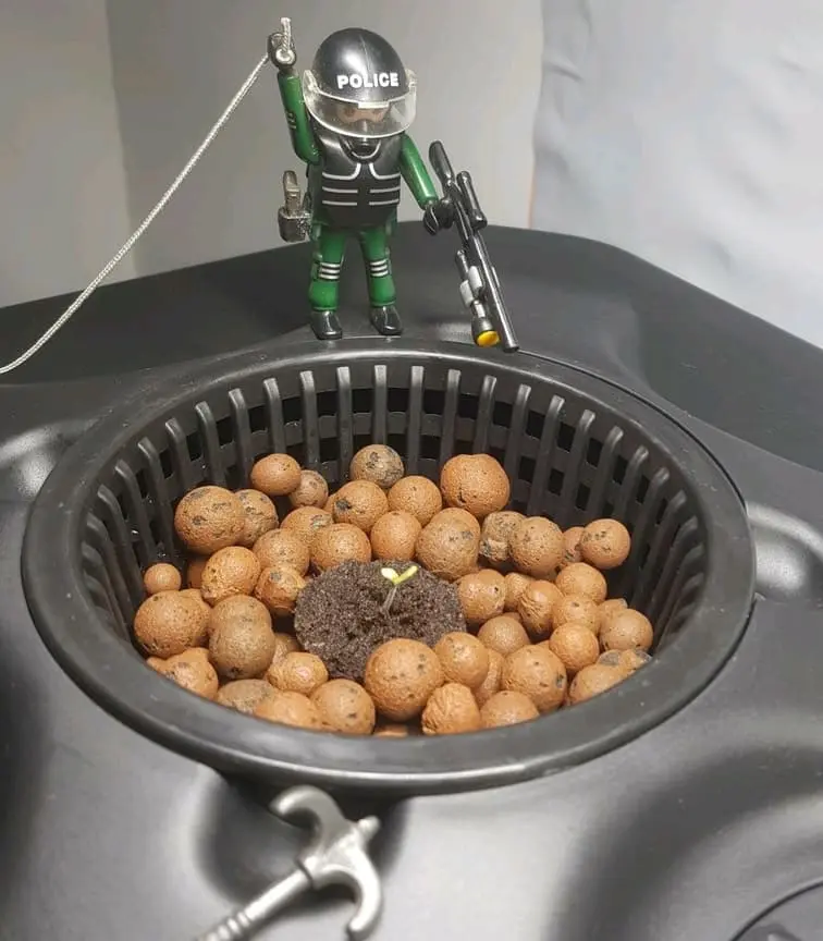 Ich setze die Sämlinge (Eazy Plug Keimung) so schnell wie möglich in das System, eigentlich wenn das erste Blattpaar da ist, bzw. wenn die Wurzel unten da ist. Kann man machen, man kann auch noch paar Tage warten. Ich liebe es sehr schnell ins neue Habitat zu setzen.