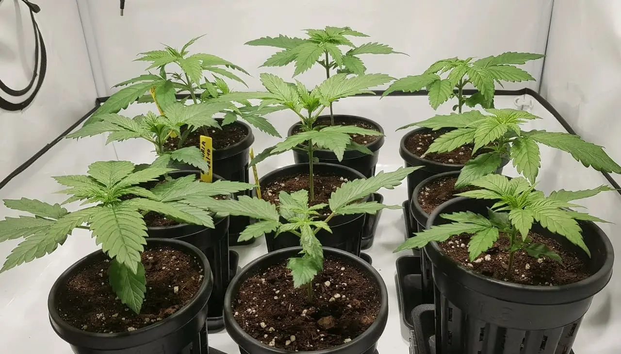 Letzte Woche in Endtöpfe gesetzt, läuft aber noch paar Tage auf 16/8, will das Wochenende auf 12/12 umstellen, weil die C99 schon getoppt UND runtergebunden ist gönne ich allen noch etwas Wachstum.