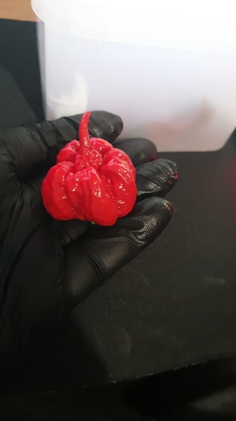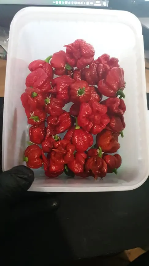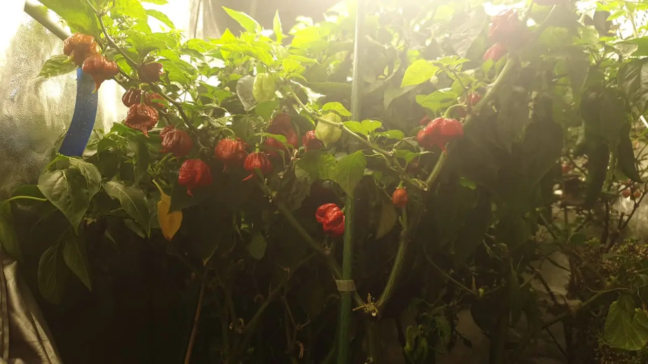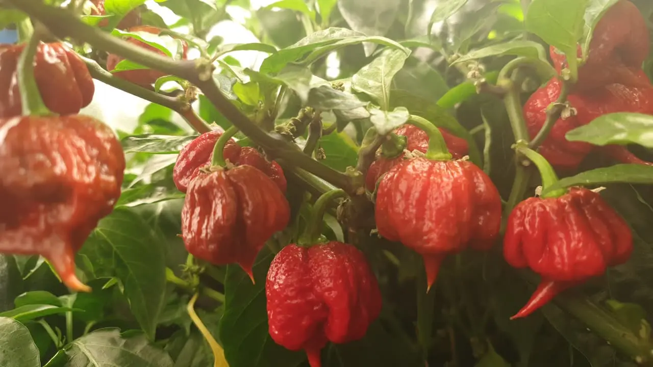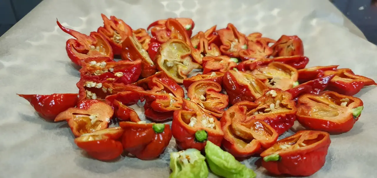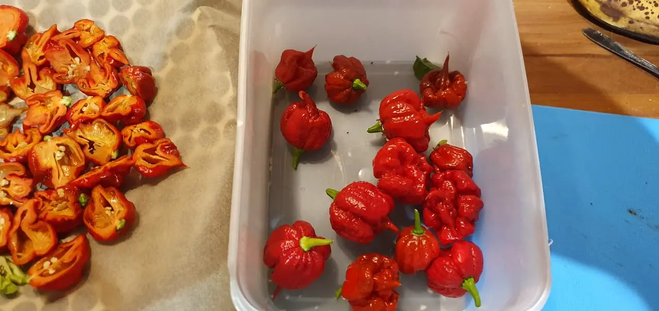 Schärfste Chili der Welt.Die aufgeschnittenen werden getrocknet, der Rest eingefroren.