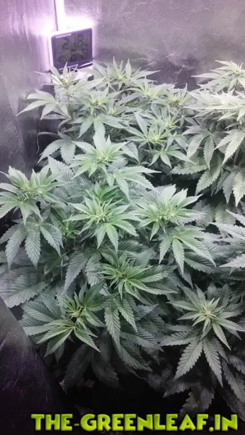 Als Licht hab ich das Pro-Emit DIY 200W, was ich erst auf 100% Lichtleistung hatte, was aber viel zu viel war. Die oberen Blätter waren extrem hellgrün und verdreht, was sich aber enorm schnell gebessert hat, als ich das Licht auf ca. 65% gedimmt hab. Hab hier gerade nur ein Bild unter dem Growlicht, wenn das reicht. Die Dame vorne links ist der Problemfall. -