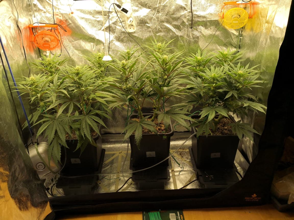 In den ersten blütewochen im unteren Drittel die blütenansätze und seitentriebe entfernen. Dürfte in Woche 2-3 nach Zeitumstellung sein 🤔