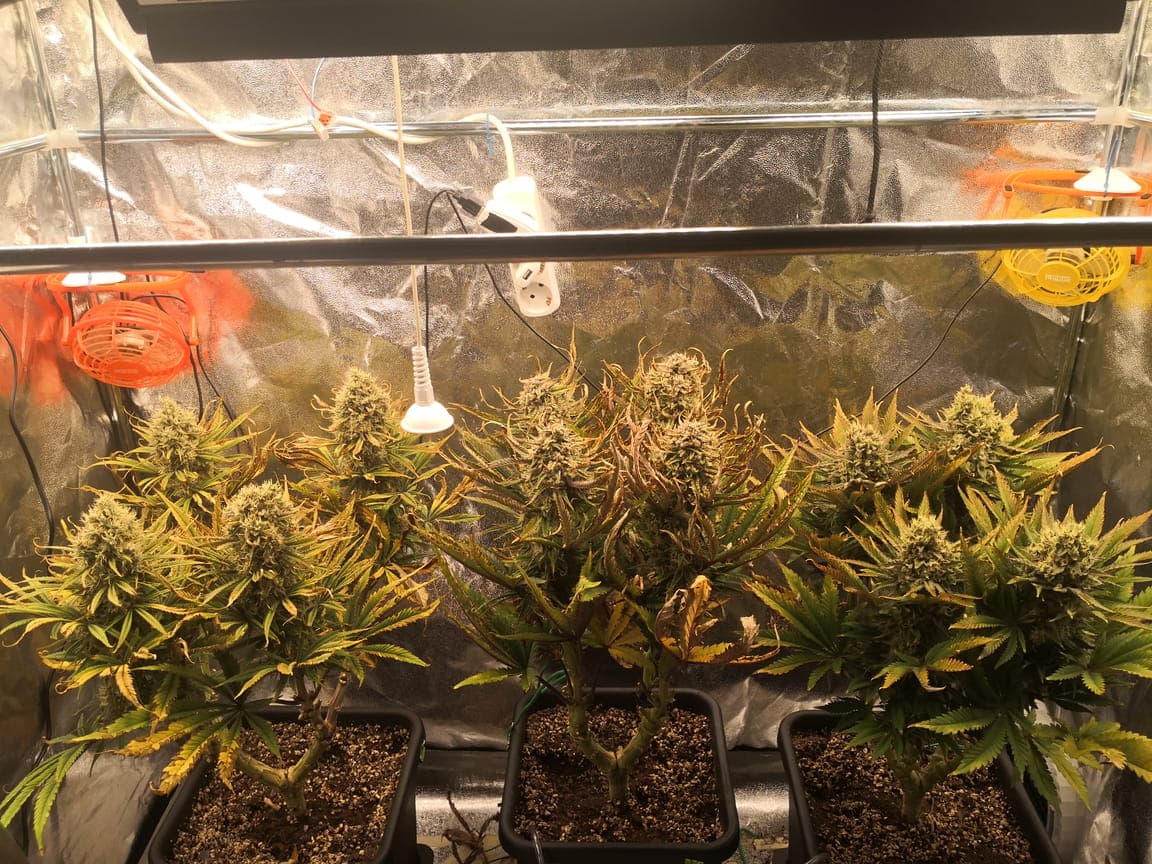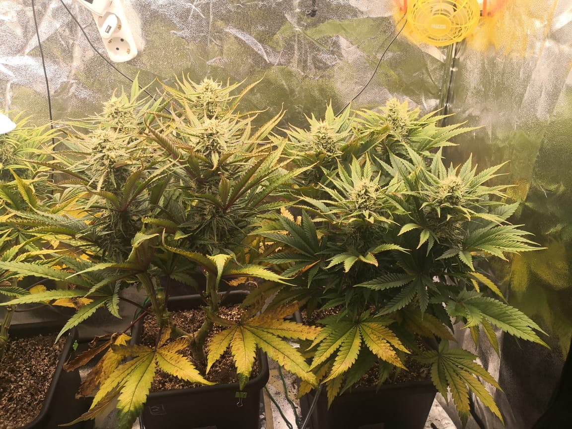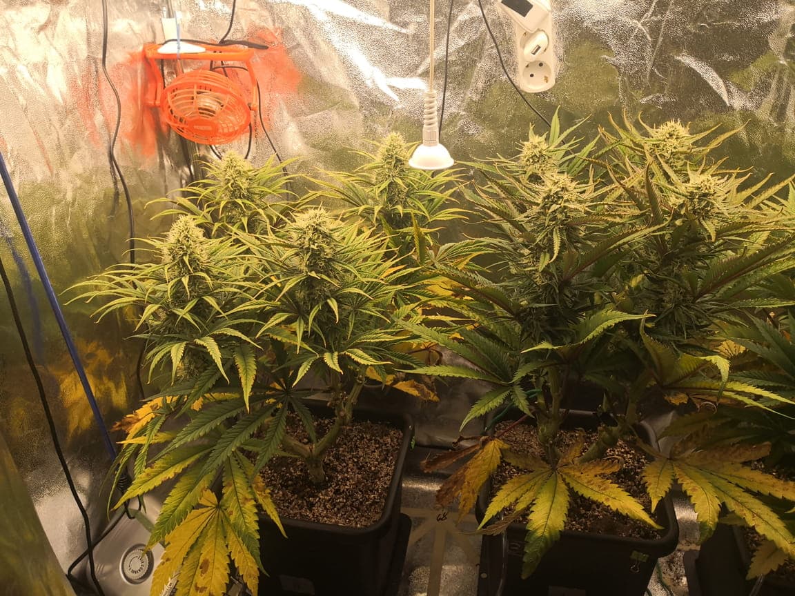Den Abstand Pflanze <> Lampe Prüf ich mit meinem Lux-Meter. Bisher hab ich den Abstand so eingestellt dass an den Pflanzen etwa 40k-50k ankommt. Nach dem Stretch wird es dann auf 60k-65k eingestellt. Ich schätze ich hätte die einfach noch ein wenig wachsen lassen sollen. Hab vermutlich zu früh nach dem toppen auf 12/12 umgestellt. Naja schauen wir mal, was daraus wird ![]()