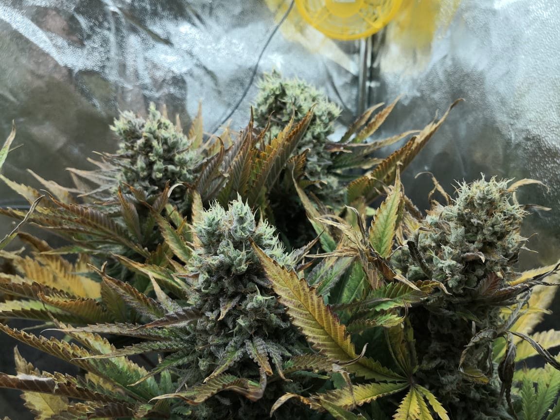Die Trichome sind schon alle Milchig und gehen langsam ins bernsteinfarbene über
