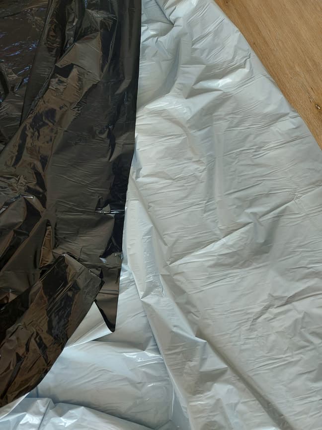Da kommt erst dichtband drunter dann die Folie drauf und von außen kommt klebe folie nochmal drüber in Holz Optik damit das aus sieht wie ein normaler Schrank