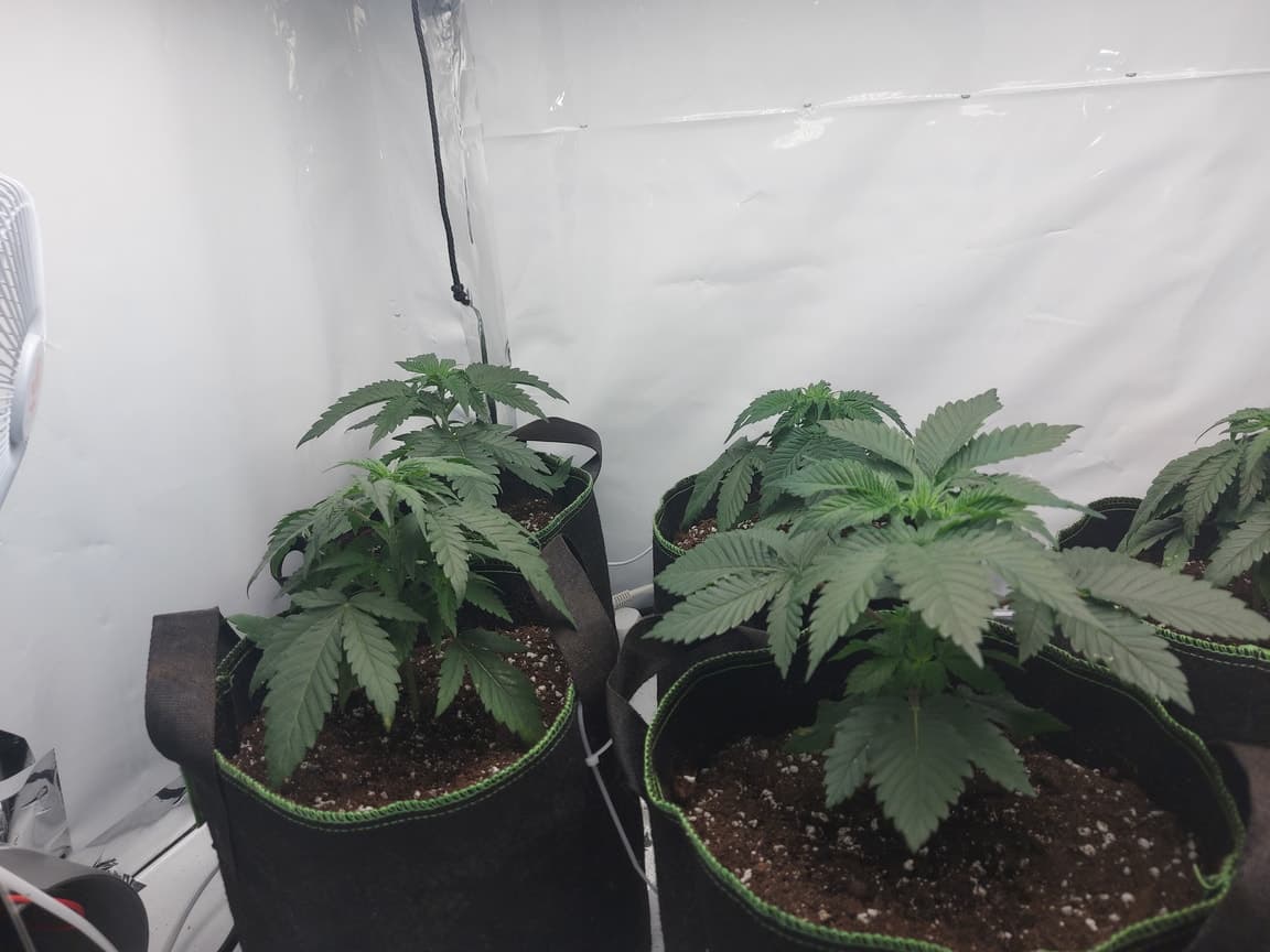 Sind 8 Damen.... 4 tropicana banana und 4 peyote critical.... 2 fliegen allerdings noch raus ... rlf bei 60%, Temperatur 24 Grad..... sind jetzt 3 wochen alt und kamen vor vor 5 tagen in die großen töpfe mit einem biobizz light und allmix gemisch unter..... werden Sonntag getoppt und in 2 wochen dann umgestellt.... mal schauen ob alles klappt... gedüngt wird leicht mit 5ml wachstumsdünger auf 5 Liter mit Steigerung um jede Woche