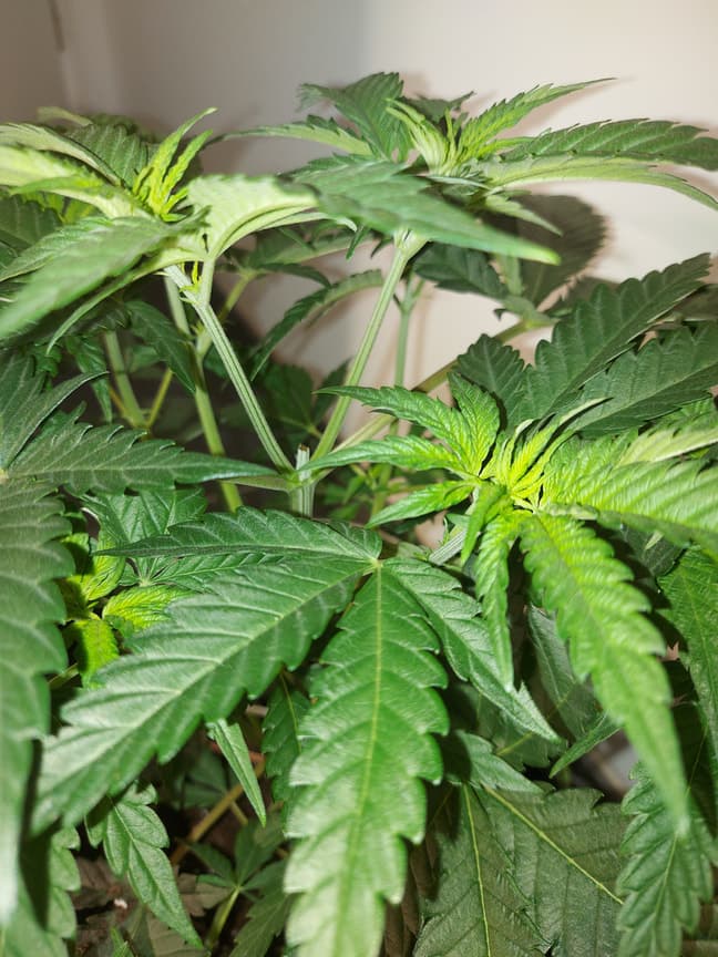 Hab sie heute in die blütephase geschickt .... sind jetzt zwischen 27 und 30 cm hoch..... hoffentlich werden die nicht zu groß, 40 cm dürfen se noch wachsen, sonst wird es zu eng da oben..... Luftfeuchtigkeit bei 50 % Temperatur an der Spitze 26 Grad..... direkt unter der LED 32 Grad..... naja mal schauen wie es si h entwickelt... abluft kann ich noch 2 mal hoch drehen .....
