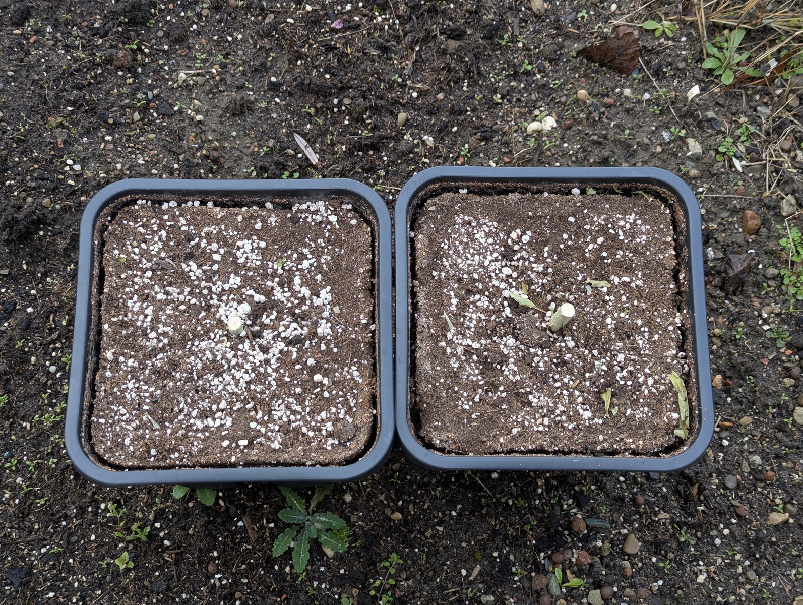 Das zweite (nicht das Doppelte) Löttchen hat die Keimblätter aus der Erde gestreckt (2025.12.24)