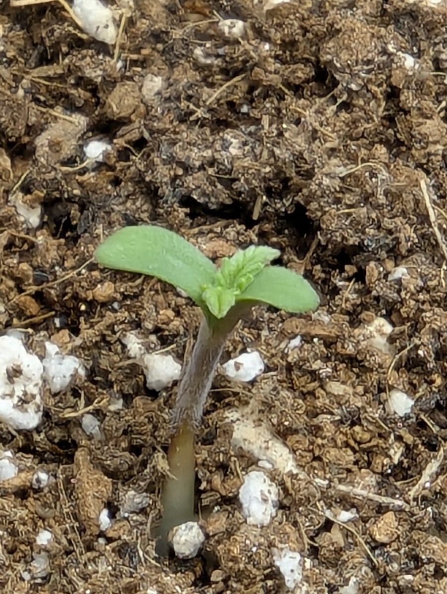 Geht wieder los, bzw. ist am 19.12. mit der Vermählung von Substrat, Wasser und Körnchen wieder losgegangen. Drei Samen aus dem Angebot vom Weedberg, Automatic Löttchen (Mimosa Dingsbums) im Ercole SuperVega 9L (Canna Bio Terra Plus, Plagron Coco Brix zu ca. 30% und Perlite ca. 20%). Zum heutigen Tagesbeginn das erste zarte Grün im Topf, somit erfolgte der Umzug in die Heimatkiste (60x60x160) mit einer ViparSpectra XS1500 pro.
