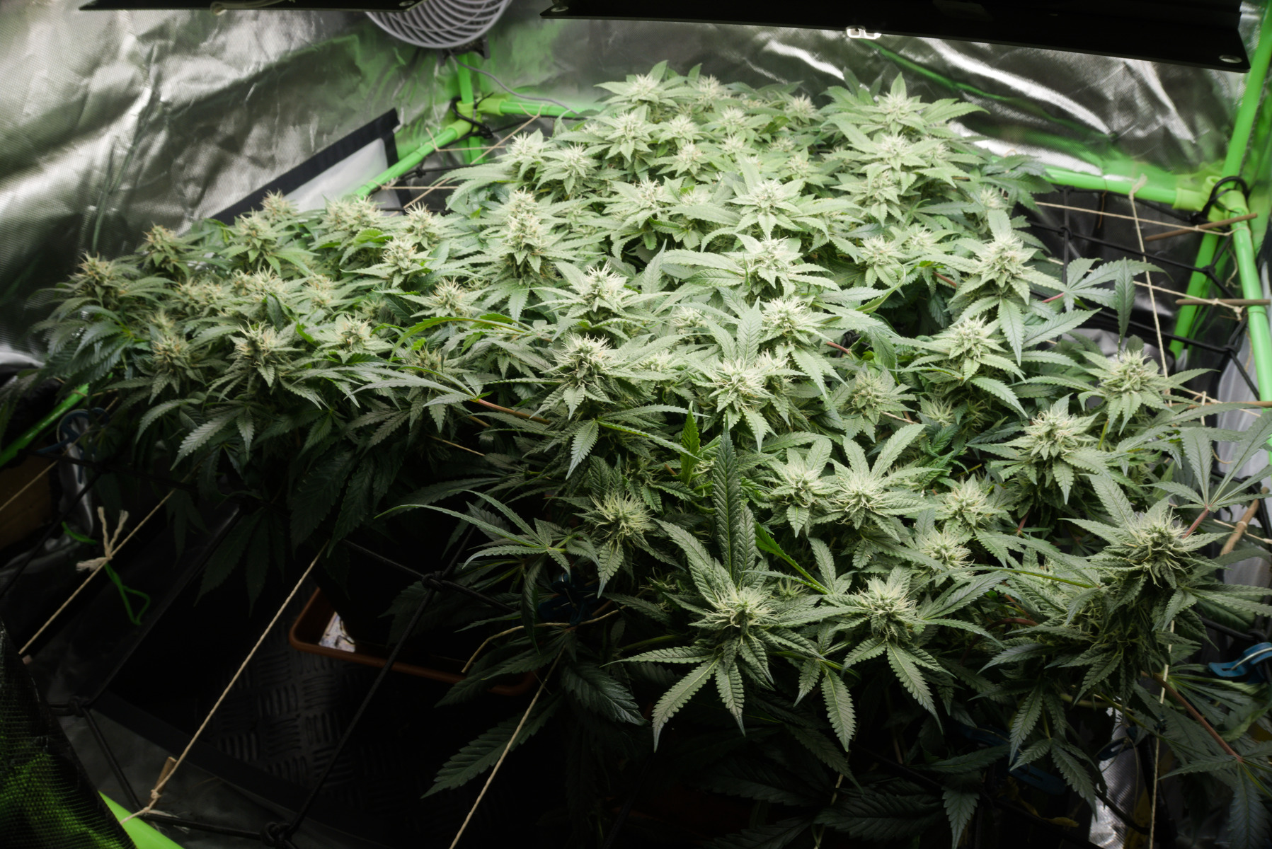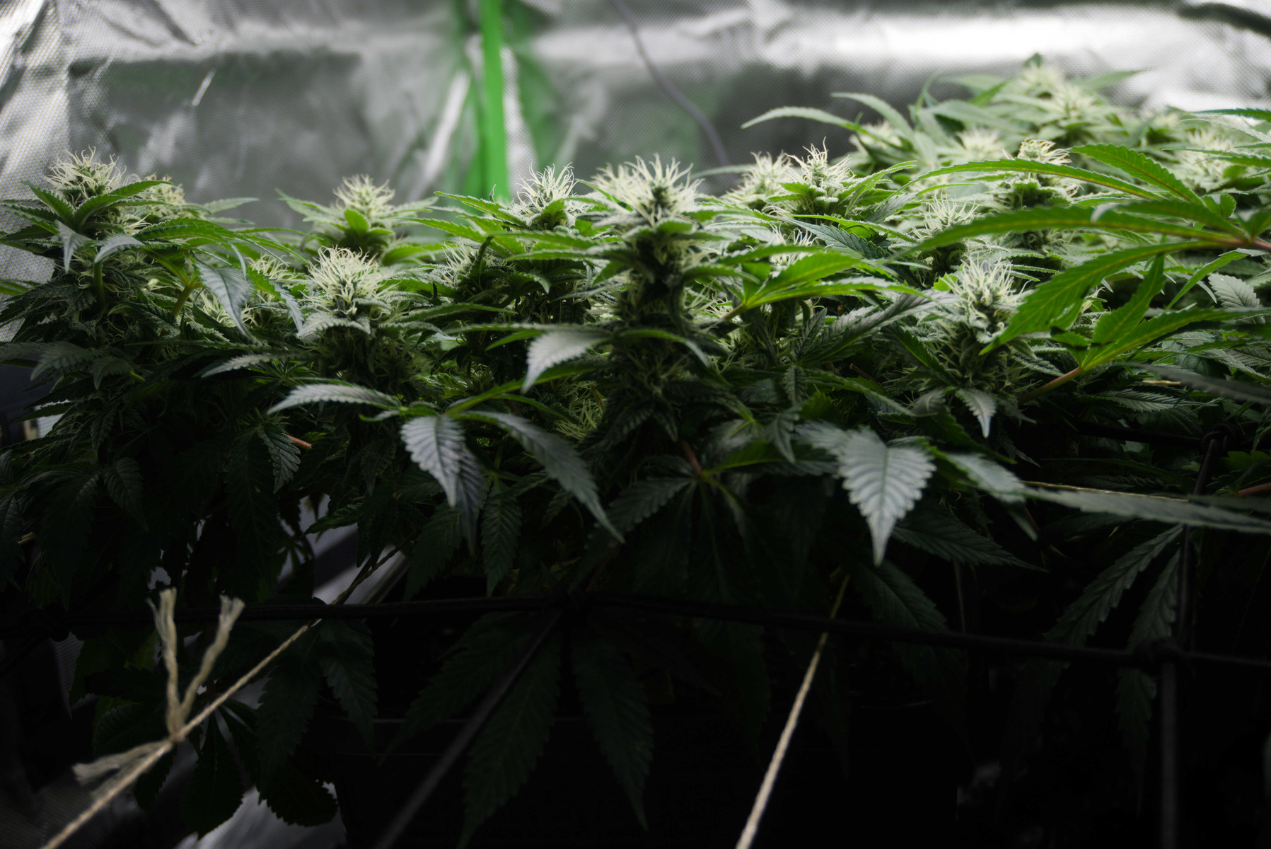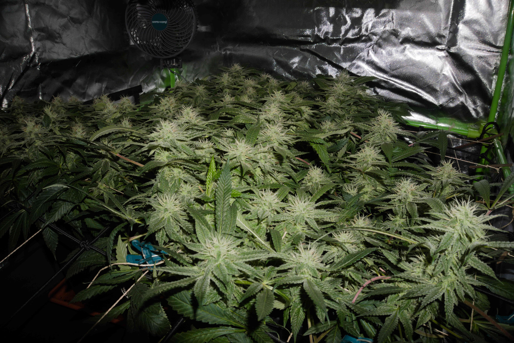 So 10-11 Wochen wollen sie wohl Stehen.Weil das alles so eng ist muss ich nun gut auf Schimmel achten und auch mal mit voller wucht reinfassen um welkes Material Zielgerichtet aus Dem Fladen zu entfernen.Aber Hinten komm ich schlecht selber hin.Eine Sache die einem Erst im Alter so richtig bewusst wird.Ein Paar Pistillen werden braun aber das koennte auch durch Zaertliche Beruehrungen meinerseits Provoziert worden sein.