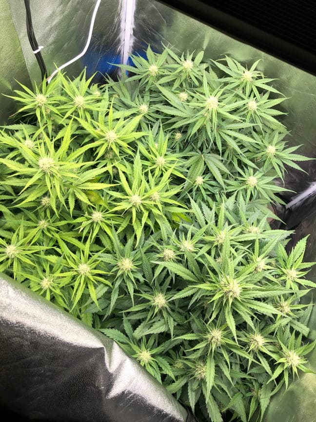 Die Pflänzchen sehen mittlerweile ordentlich aus. In 3 Wochen sollten sie laut Plan fertig sein. Denke das passt auch ganz gut zum aktuellen Stand. Die unteren Buds bekommen entsprechend weniger Licht. Hat sich ordentlich breit gemacht ![]()