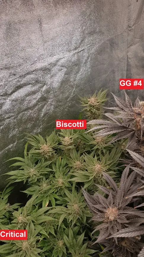 Biscotti hat noch einmal aufgeholt und ricecht am meisten wie die Super Silver Haze nach Candies und Blumen. Die GG #4 ist die am grössten und massigsten. Riecht auch nicht schlecht und hat violette Blätter.Und hier die Fotos. Größere Fotos gibts hier