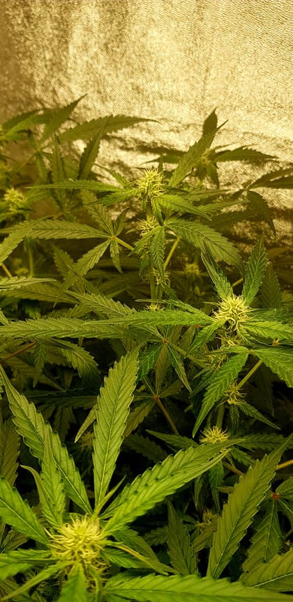 Sieht aus wie ein Jungel und die Wachsen immernoch. Ganz oben links der Bruce "Bonsai" Banner ist immer noch nicht auf Blüte. Tut so einen auf Vorblüte seit einer Woche, aber kommen tut da NixT. Musste paar Mainstems supercroppen Lemon sKunk mitte und unten links die Blue Cheese. Ich denke mal die Calzium und Magnesium waren, dass der Grow dieses mal grösser ist als die Vorgänger. Da hatte ich ja fast gar nichts benutzt ausser Hesi Pack.