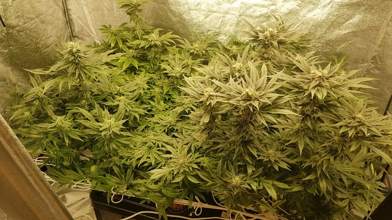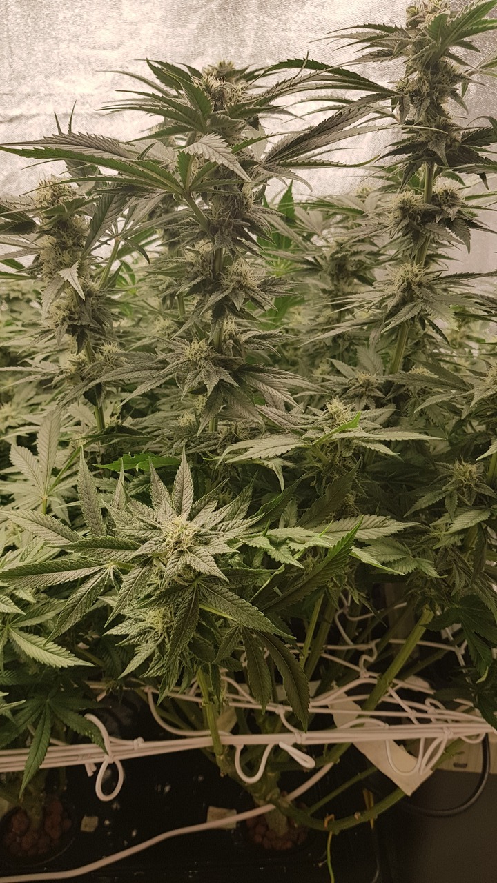 Also Ich habe in diesem Lauf nur einmal zur Transition von Veggi zur Blüte und danach einmal NL-Wechsel durchgeführt. sonst immer nu NL hinzugetan. Mit Ablagerungen oder Mineral-Krusten hatte ich nie zu tun. Düngerseitig Probleme hatte ich auch nicht bis jetzt. ıch tue sogar fast immer Kalium und/oder Natriumkarbonat hinzu, damit der PH nicht absackt. Versuche halt EC und PH anständig zu halten. Nur sie SSL Oben links auf den Bildern hat Probleme. Habe bis jetzt nicht herausbekommen woran es liegt. Die Anderen sehen gut aus. RLF ist leider bei 65-72% und ich Lüfte meist wenn's zu feucht wird.