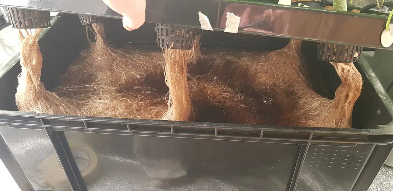 Na Ich nehme ne Getränkeflasche, mixe da drin MM mit ROW für ne Woche, lasse das absinken für ein bis zwei Tage und verwende dann die klare Flüssigkeit. Aber dieses Mal habe ich von der Mary Jane Messe eine Probepackung Atami Slic Boost, was ich benutze. Und ich wechsele das Wasser fast nie, außer von Vegi zu Bloom. Bis jetzt keine Probleme.