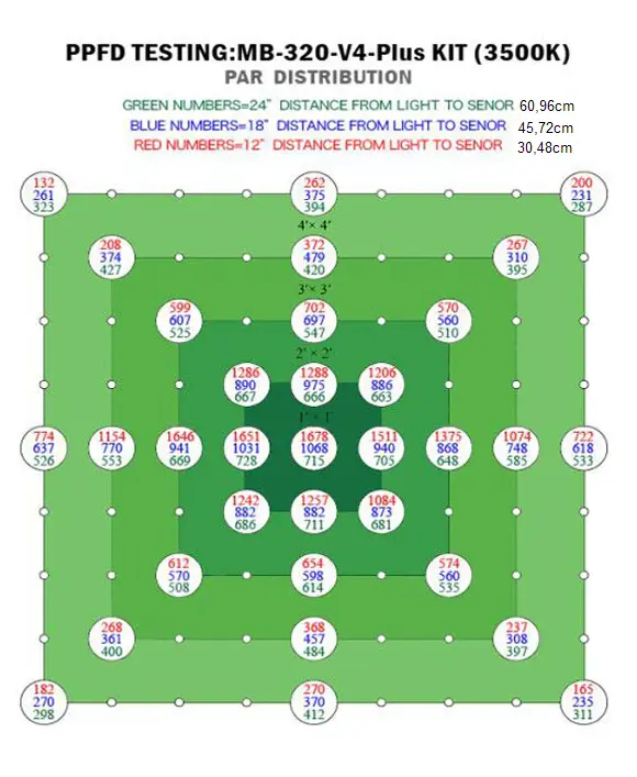 @Pan Die Lichter laufen mit etwa 50%, also mit 160W bei etwa 45-50cm Entfernung zu den Pflanzen. Guckstu Par-map bei maximal Leistung. -